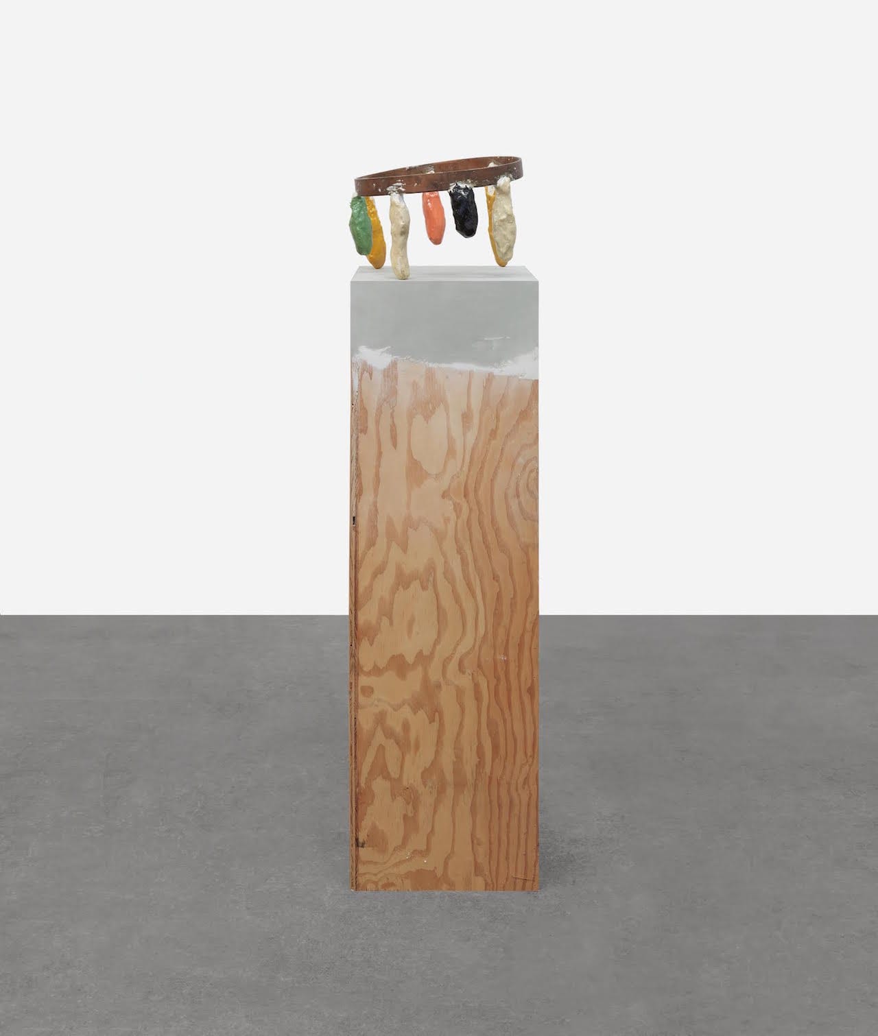 In his current exhibition at Garth Greenan Gallery (September 10–October 17, 2015), Strzelec continues to extend the possibilities inherent in the idea that sculpture need not become a signature form. By doing so, he further separates himself from his Minimalist forebears and the material unity of their discrete objects, as well as from his contemporaries and their buy-stuff- at-Home Depot approach. Strzelec also defies the view that deskilling is the only viable option for sculptors, bringing together welding, casting and woodworking together in a single work, such as “St. Peter” (2015), one of the many screwball pieces in this exhibition.