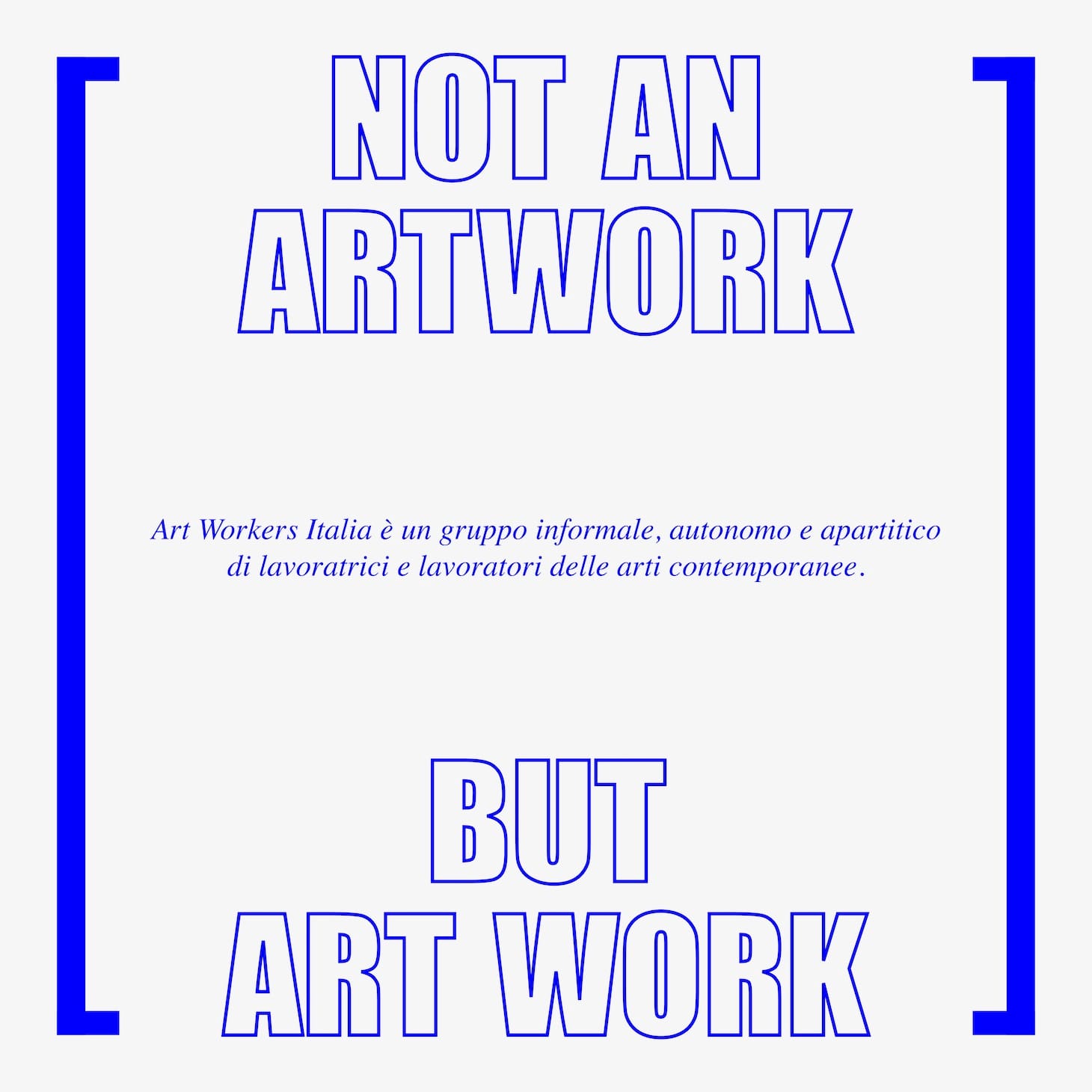 According to AWI’s website, “Art Workers Italia is an informal, autonomous, and non-partisan group of contemporary art workers formed in response to the current crisis due to the COVID-19 pandemic.” Together, they aim to finally address these systemic gaps that have long existed in the art world, and in their words, “advocat[e] for the inalienable right for the recognition of our status as workers, and along with it our subsequent rights and obligations.” In addition to establishing the group, AWI has also published a manifesto succinctly summarizing the institutional problems art workers are facing in Italy, presenting it at the virtual march Primo Maggio Cittadino in Turin on May first, International Workers’ Day.