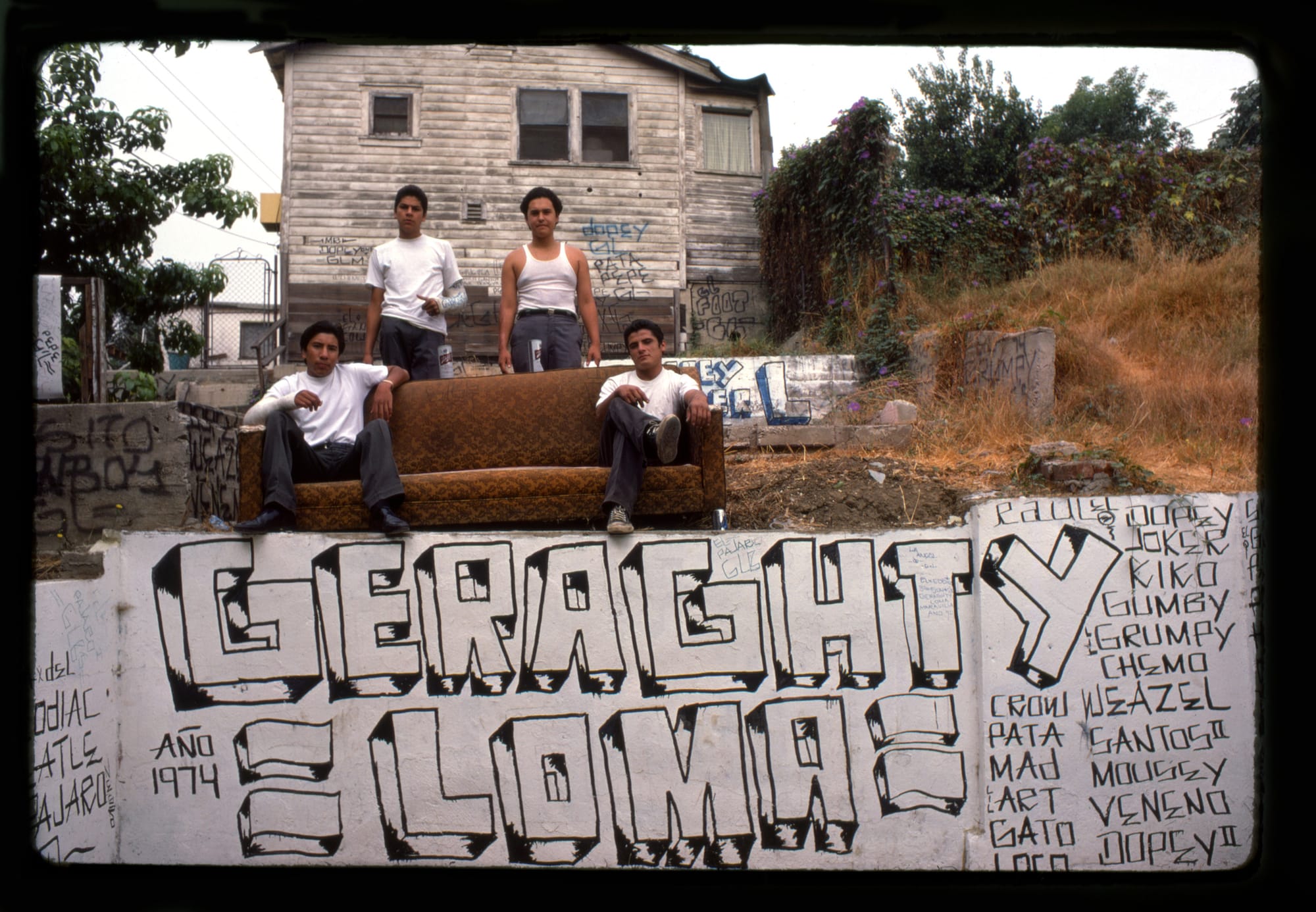 He met artist Chaz Bojorquez, who would “translate” the blocky, rigid form of the Cholo-style graffiti covering the streets, a collaboration that resulted in Cesaretti’s first book Street Writers: A Guided Tour of Chicano Graffiti (1975). He would go on to chronicle other Angeleno communities, including the Klique car club for the series East LA Diary (1970s); police recruits in Police Academy, Los Angeles (1979–1980); and the nascent punk scene with Punks, Los Angeles (1982). He focused his lens internationally as well, with subsequent series documenting a folk healer in Oaxaca, Rio de Janeiro’s red-light district, and gun culture in Colón, Panama.
