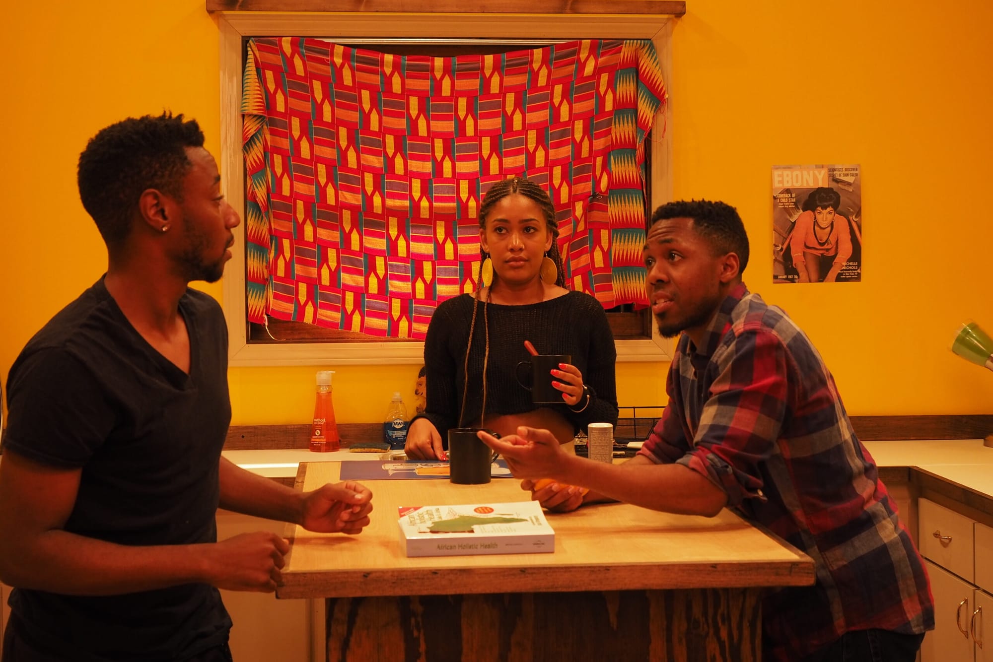 The inherited home is baptized the House of Ubuntu, a communal space for Julian, his girlfriend Gwen (Nozipho Mclean) and other friends and comrades. Their mission is articulated by alternating quotes on a large chalkboard, including, notably, Kwame Nkrumah’s: “Practice without thought is blind; thought without practice is empty.” In the House of Ubuntu, residents read aloud from revolutionary works and participate in gatherings aimed at re-thinking and re-organizing the world. Patricia (Nyabel Lual), another resident, even offers a workshop on Nuer, a language spoken in South Sudan. Throughout, the film evinces a sharp reflection on the intimate stakes of gentrification and class antagonism, which persist even in radical collectives. Asili pays careful attention to the banal hiccups of creating new social formations, such as adjustments in everyday language and chore schedules.