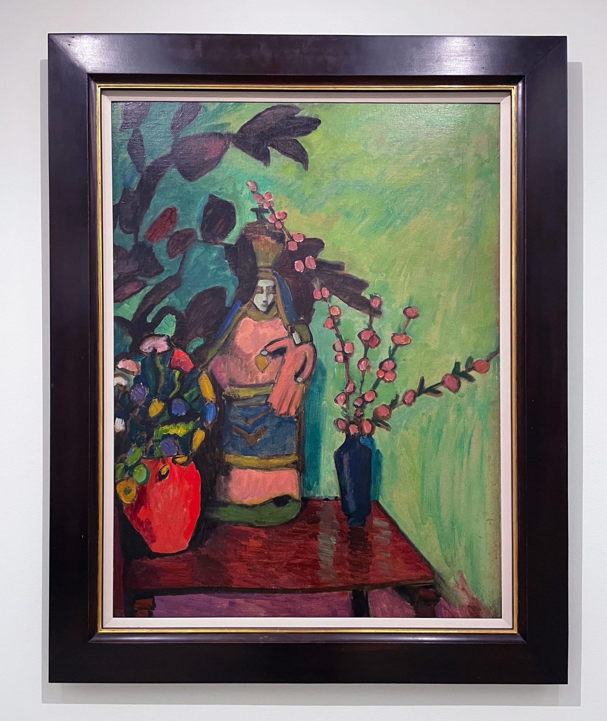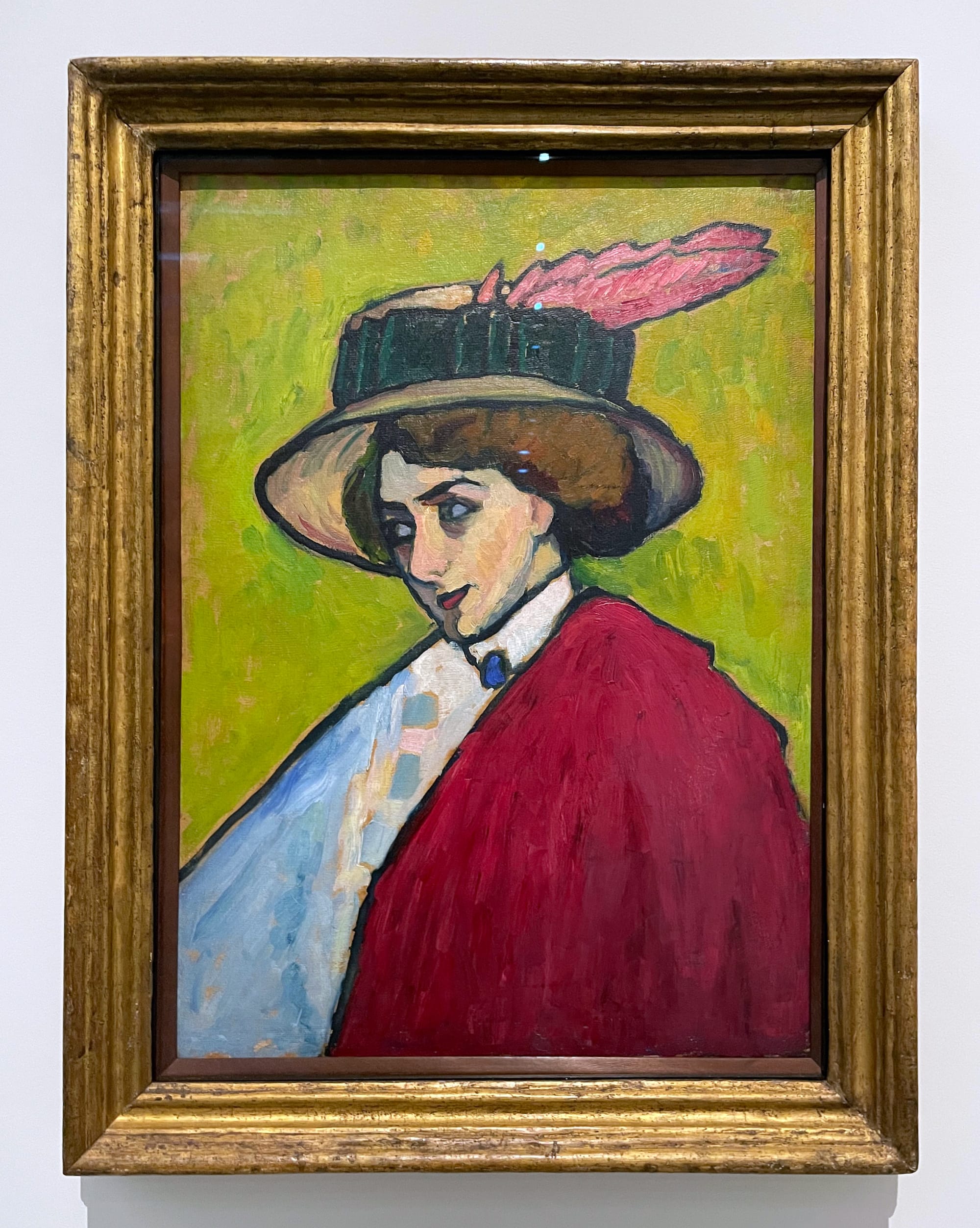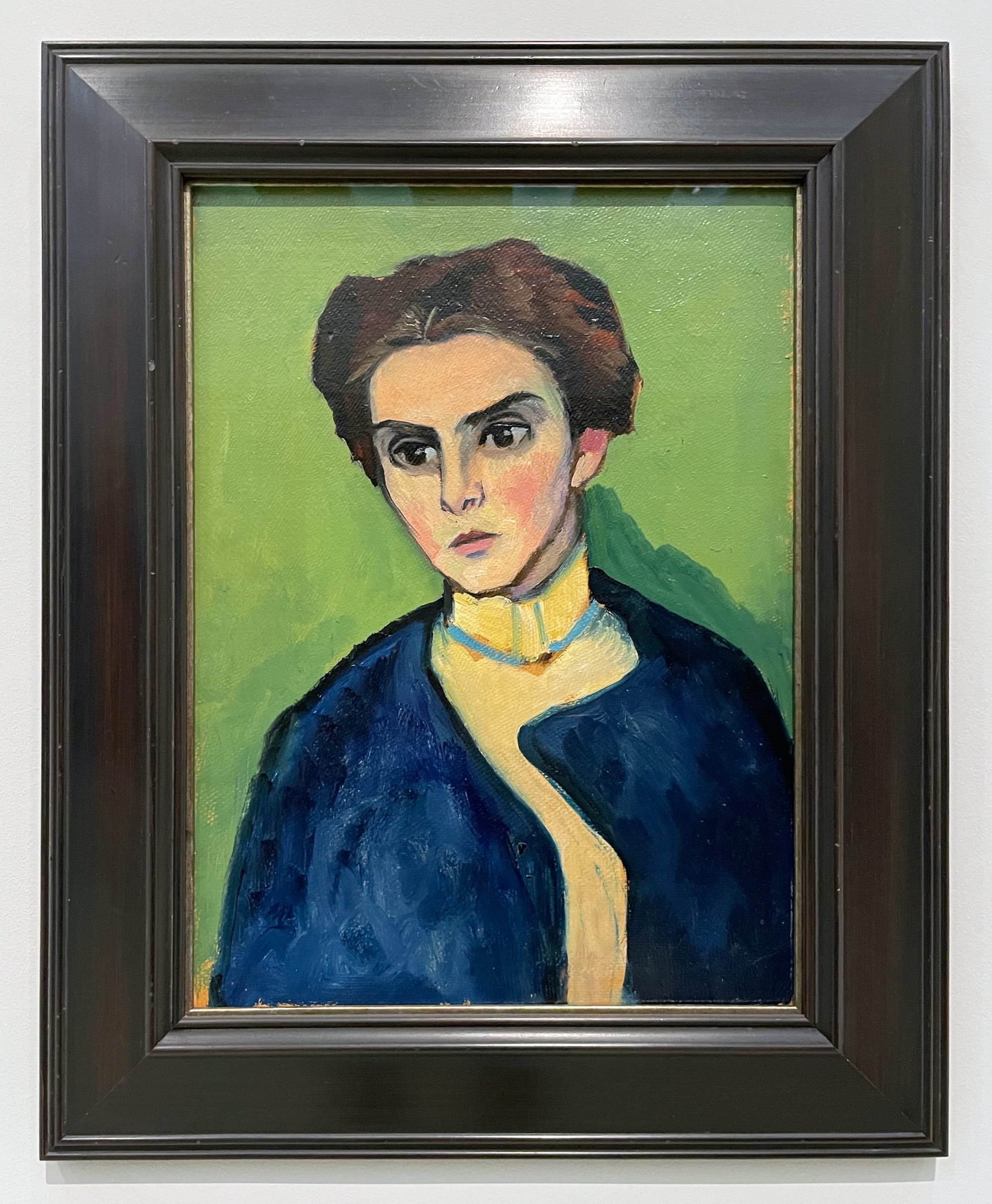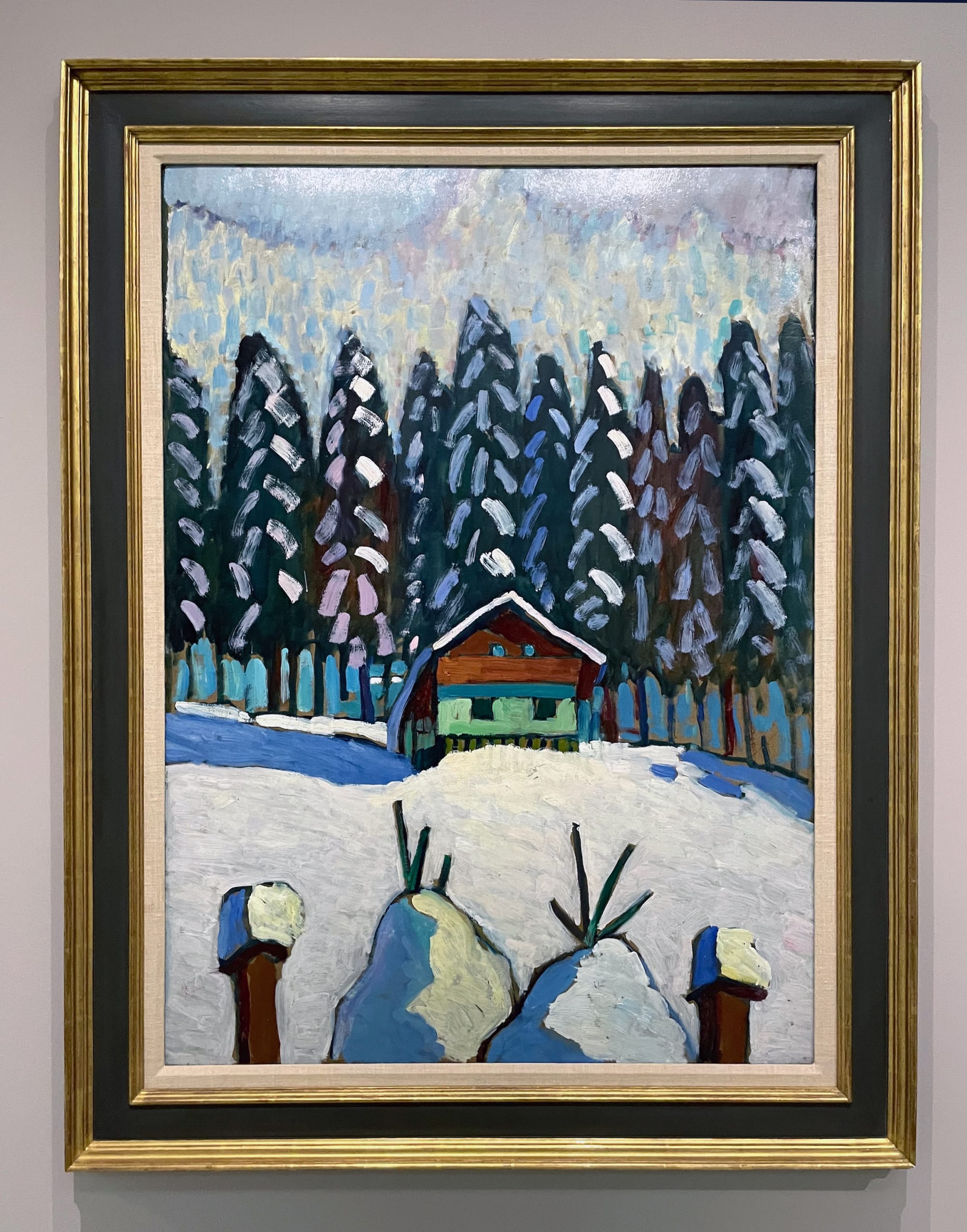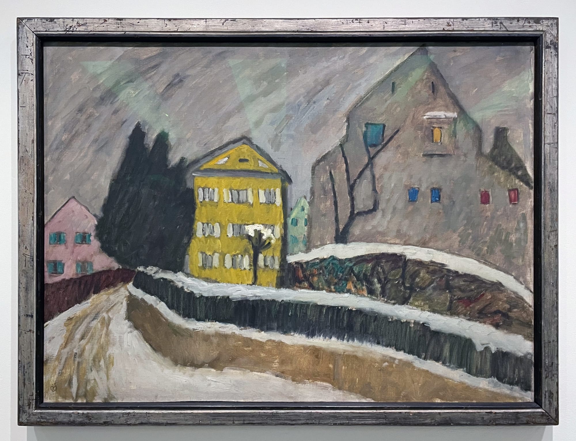 This line of thought crossed my mind when I visited Contours of a World, a beautiful tour through Münter’s creative life installed in the museum’s fourth- and fifth-floor side galleries rather than its majestic ramp. I heard at least one “she’s as good as them” while I was there. I’d counter that she more than equaled her celebrated counterparts. As a driving force of The Blue Rider, her timeless talent arguably surmounted the other members’ formal innovations.