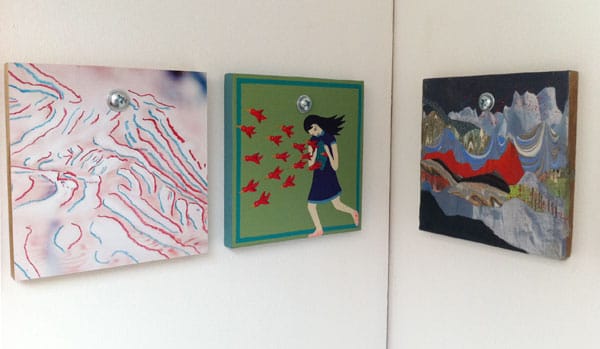 The group has created a six foot cube complete with skylight and small works (five inch square) by 17 artists bolted to the walls.