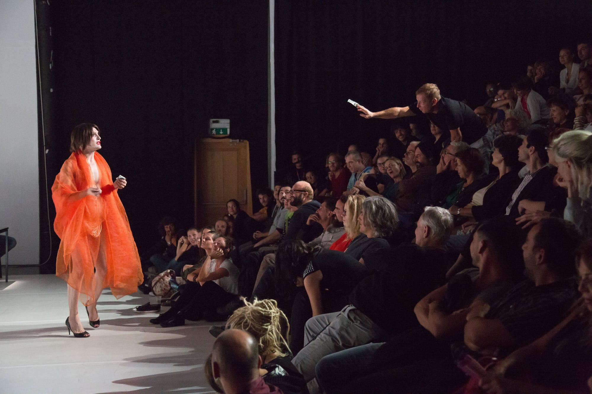 The directed actions in Ivo Dimchev's P Project progressed from audience members dancing alone in front strangers to nude performers simulating sex.