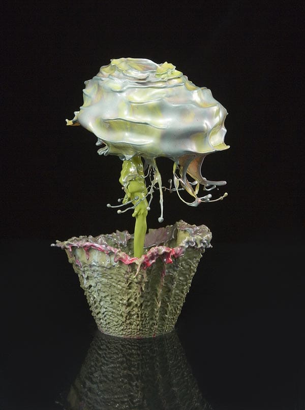 In design, we talk about splash screens, but this is literally splash art. These surreal, psychedelic flowers were taken with a high-speed camera and frozen in time in the midst of eruption. The series is the work of photographer Jack Long, who has an incredible talent for catching the right moment of the splash, creating gorgeous flower patterns mid-explosion.