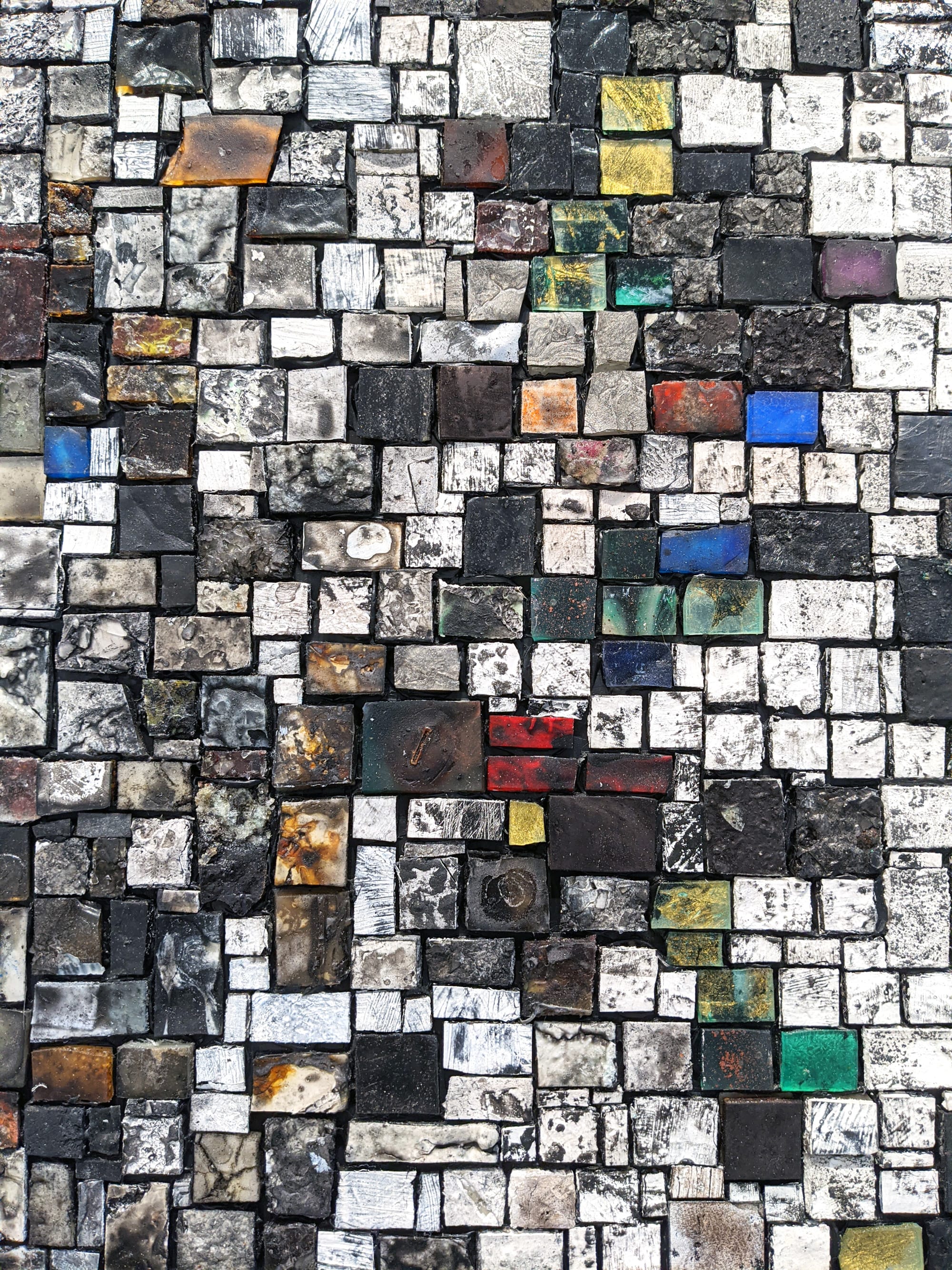 Get nose-close. Look from afar. Ponder the title. Repeat. The experience is thoroughly rewarding. A fierce thinker, Whitten maintained a voracious intellectual appetite, expressed equally through his writings. Inspired by quantum mechanics and traditional African sculpture, he created soulful compositions, topographies of his feelings for individuals who have meant something to him. Whitten distilled such essences into each tessera, yielding works that are complex and arresting.