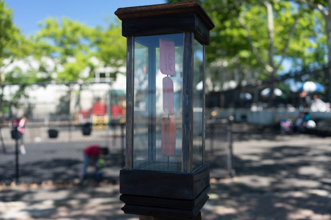 It’s that local history that artist Jackie Mock wanted to celebrate in The Pencil Museum, a new installation in Faber Park, once the site of the Faber Mansion. “It’s amazing that [Eberhard Faber] was one of the first big factories in New York, and a lot of people who use the park every day have no idea what the Faber name is or how it ties into the history of the city,” Mock told Hyperallergic.