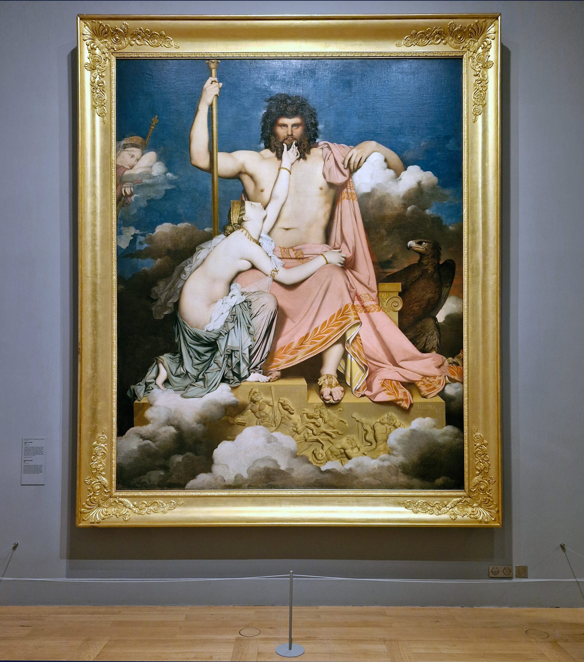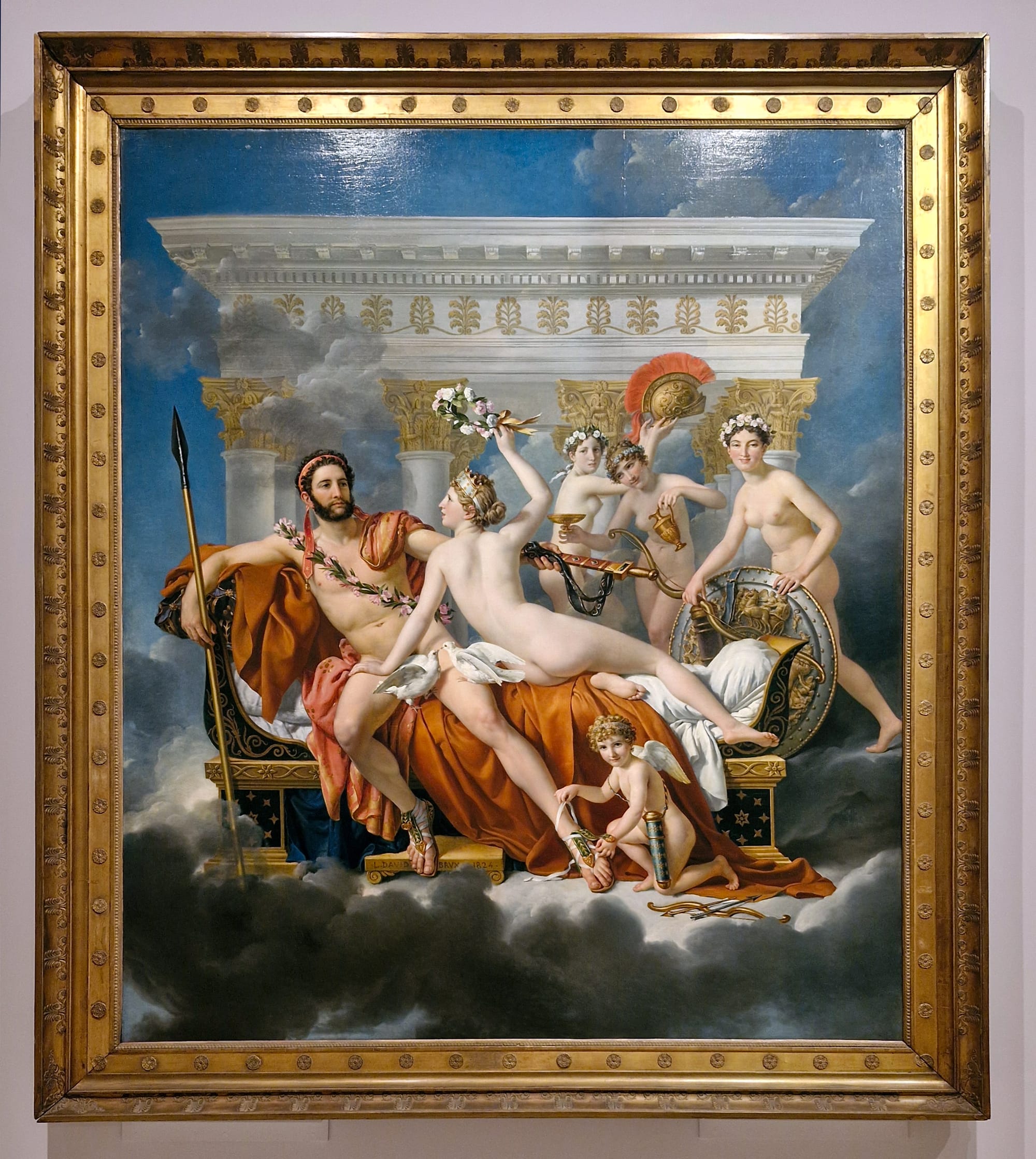 Many artists tail off in twilight years, but David was exiled following the fall of the Empire in 1815 and restoration of the Bourbons. Now adrift with no political purpose, he turned toward a renewed trend for excessively silly, eroticizing neoclassicism, clearly seen in “Mars Disarmed by Venus and the Graces” (1824). It is paired here with another stupendous loan — Ingres’s “Jupiter and Thesis” (1811) from Aix-en-Provence. As if to justify David’s U-turn into sycophantic nymphs cavorting amongst winged semi-nudes with artfully placed doves and the like, Allard and Fabre suggest that it may have been a fatalistic shrug at the demise of his own politically charged history painting, or even a dig at Ingres’s wholehearted and unironic embracing of silly eroticism. These might be the only speculative interjections amongst an otherwise fact- and visual analysis-driven survey. The Louvre may have used the 200th anniversary of David’s exile as a reason to mount the show, but with this enormous spectacle, they match the seriousness of his intent. This is art history as it should be: told through close attention to the visual qualities and what contextual meaning they convey. Vive l’histoire de l’art.