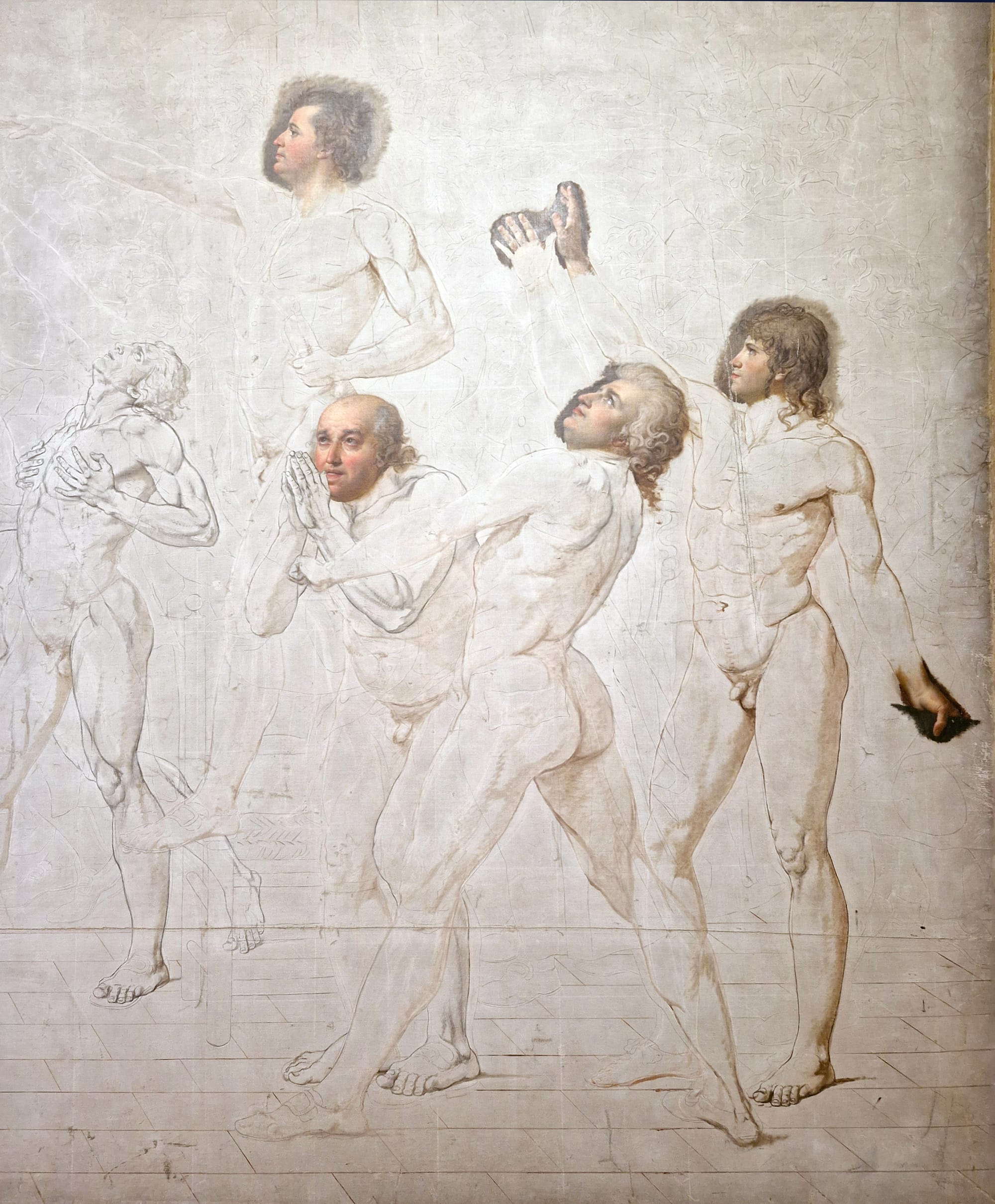 It also demonstrates the fundamental importance of artistic style in transmitting a message — form, rather than just content — the very heart of art. David himself seemed keenly aware of this from the start, cycling through competing styles at the time. It is startling to observe early works that emulate the enduring style of Fragonard in lively, bright pastel colour, such as his 1773 “Death of Seneca,” which, for all its dark content, is a rather bright and jolly affair. Or the austere influence of Poussin. It is equally informative to be shown three contemporary treatments of the subject “Bellisarius Begging for Alms” by different artists — François-André Vincent in 1776, Pierre Peyron in 1779, and David in 1784 — and walked through the differences in form, composition, and tone in explanatory captions. This is visual analysis — the backbone of art history — in full swing, and leads the viewer right up to the visual analysis of “Oath of the Horatii,” with its spaced-out composition of figures, monumentalism, historic detail, and emphatic moralizing tone. What a pleasure to appreciate its epic scale in the Napoleon exhibition space (how fitting) beneath the Louvre, instead of the usual daylit cattle farm upstairs.