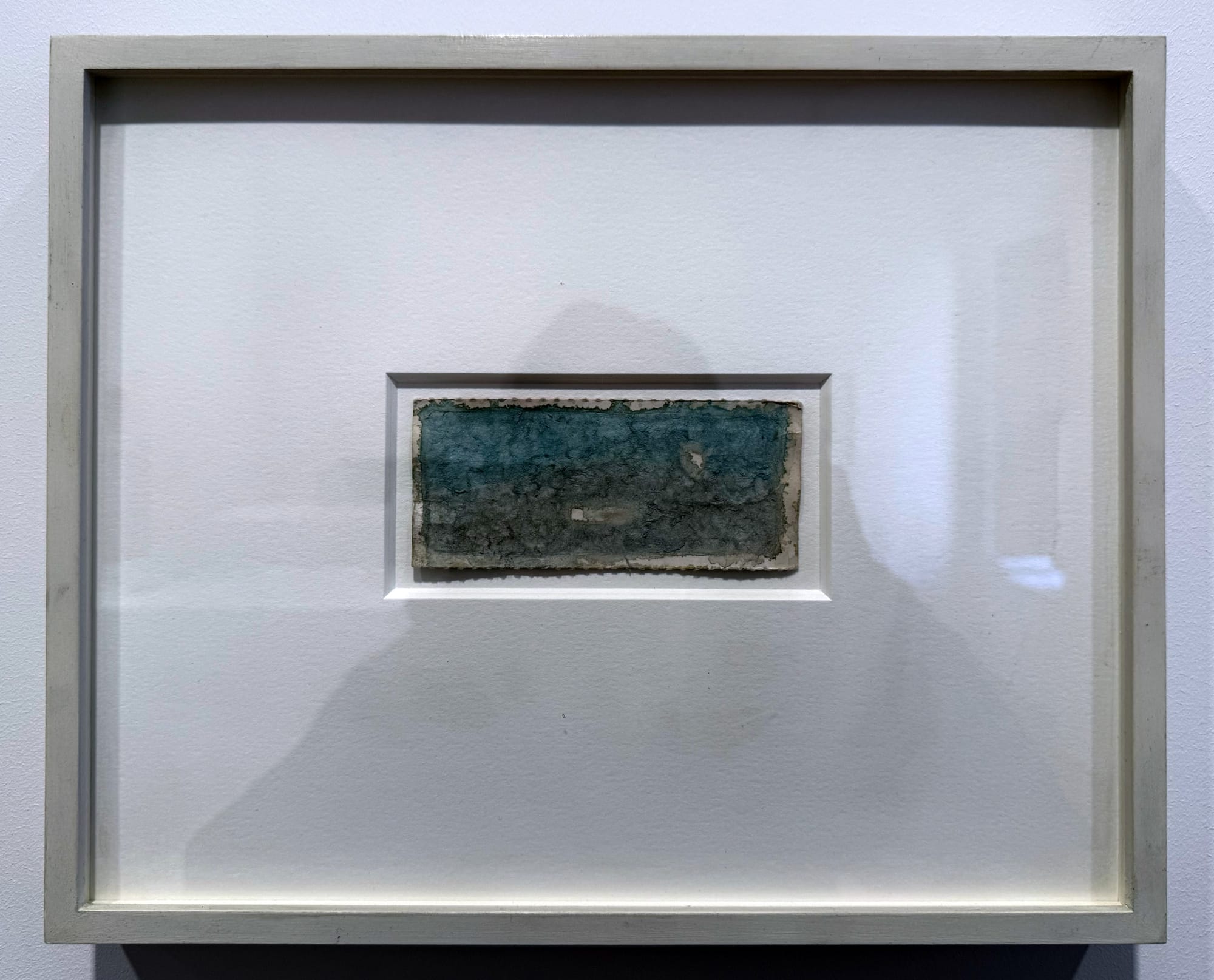 Check out the medium line for “Untitled (shooting stars)” (undated): “color of unknown origin on found paper.” It’s a tiny, unevenly thick piece of paper splotched by a light wash of blue and gray ink, suggesting to me the point where sea meets earth — this, from landlocked Idaho.