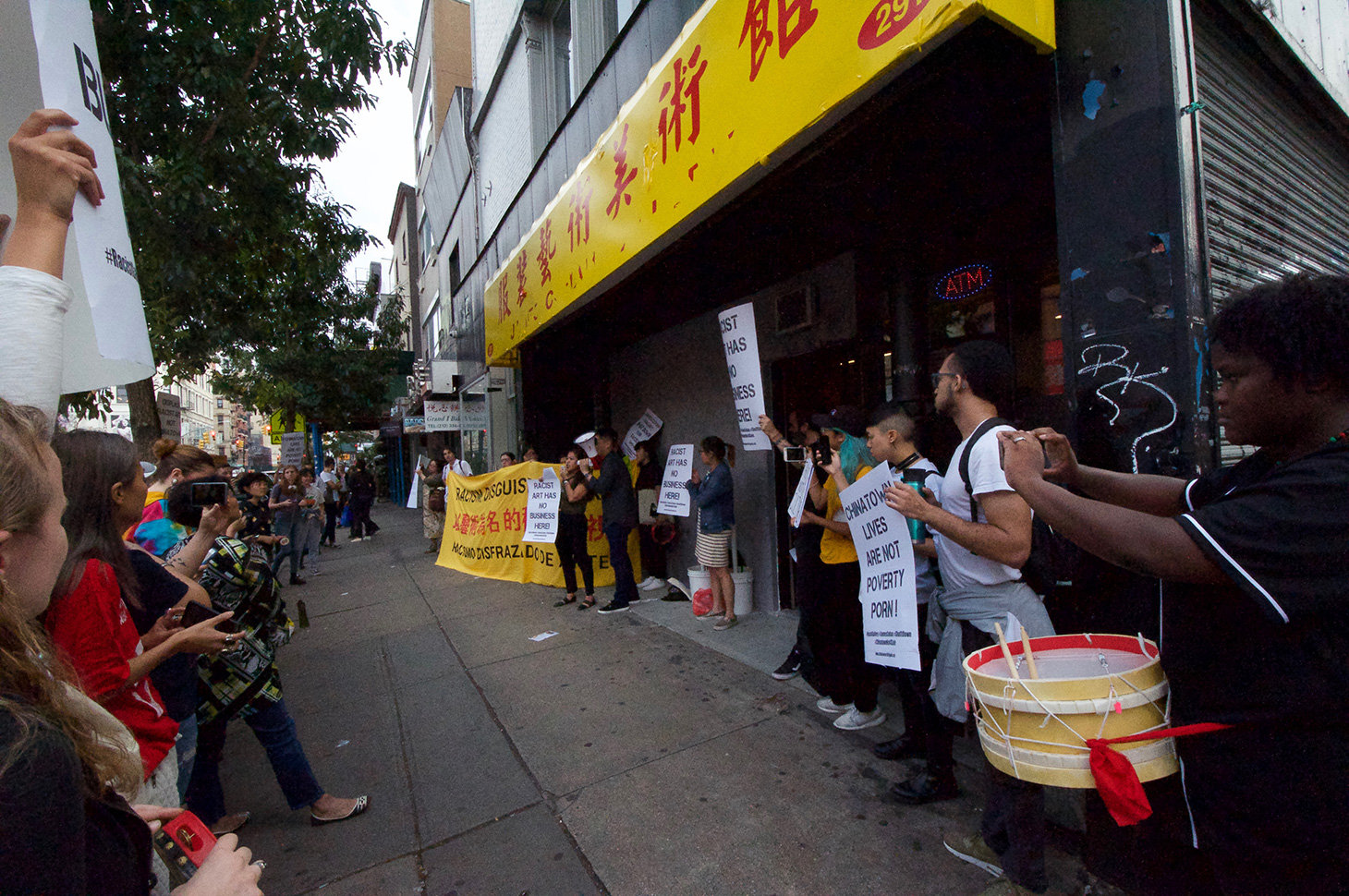 “We have folks in Chinatown Art Brigade and in CAAAV who have lived here for generations … [they] say that this is an insult to the community. What we’re saying is that we’re not trying to be divisive. In fact, we’re just trying to actually use this as a moment to teach this gallery and the artist that this is insulting to our community, that you’re equating our community to poverty porn, and it’s not. We want this to be a teaching moment … For us, literally, we’re not trying to be divisive. We’re actually saying that if you and other galleries and other gentrifiers want to be on the right side of things, if you want to make a gesture, as you say to the community, then this is not the right gesture to make. This is an insult. This is an insulting gesture to make to our community.”