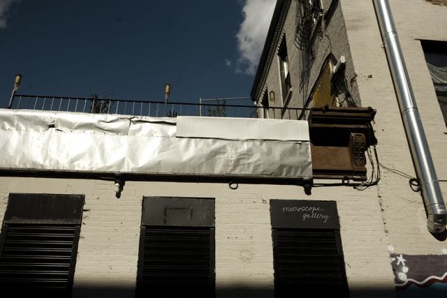 After the Monday night screening of a film by Soviet-Armenian filmmaker Sergei Paradjanov, Elle Burchill told me that their Event Series has been doing really well. Being very prolific, Microscope hosts art film screenings and performances almost every Monday night. Monday events usually complement the current exhibition or are related to it in some way. Burchill says that recently they even had to send home some unlucky people when they couldn’t jam in anymore into the 23-f00t-long space for a recent event. There were already 45 people inside. It is notable (and commendable) that Microscope Gallery actually pays the performers and the filmmakers who are often present at the screenings. It is amazing to watch a white box gallery space turn into a black box screening room at night, and, if you’re lucky, you can watch films by artists who exhibit on the walls of the gallery.