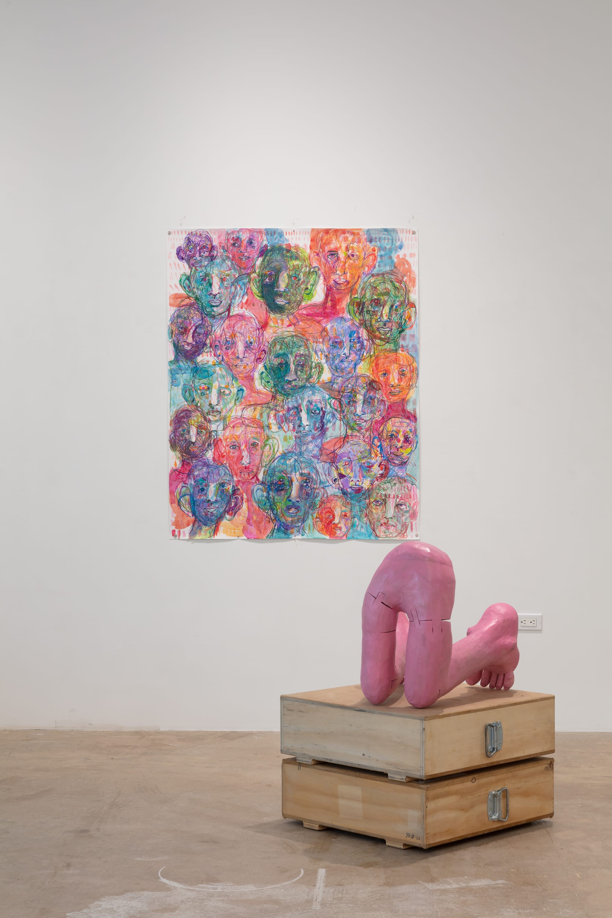 DALLAS — A singular face appears across James Gilbert’s exhibition I Don’t Know, You Don't Know, They Don’t Know at Erin Cluley Gallery. Ovular and narrow with deep-set eyes and sealed lips, the face is the central subject of colorful drawings on paper and painted wood sculptures. Its blank expression and cartoonish, wing-like ears give off a sense of awkward solemnity, while the face’s baldness and generic features evade the specificity of a certain race, gender, or age. Who is this figure, and why is it so pervasive in Gilbert’s work?