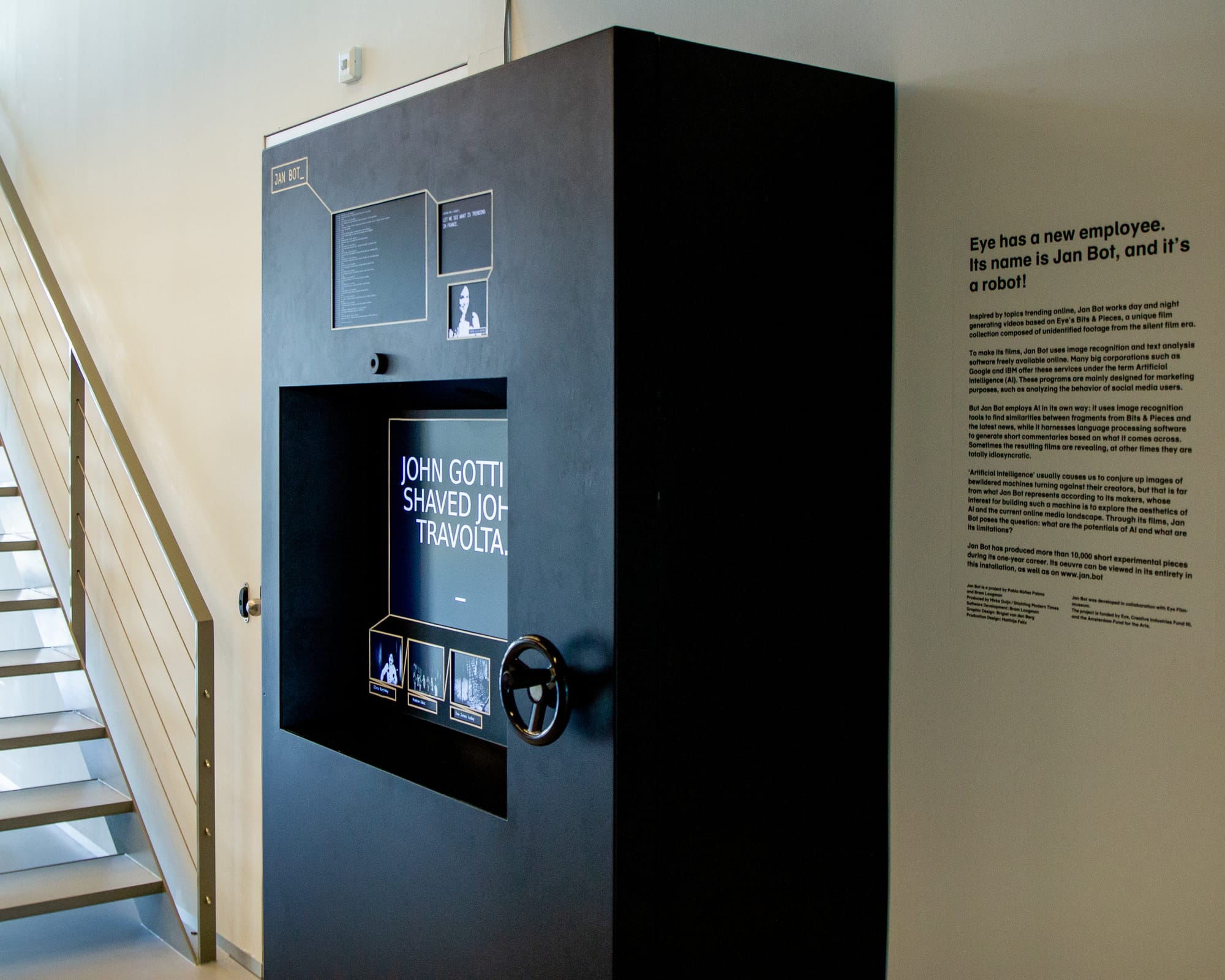 So instead the bot — which is physically based in the Eye — will be unplugged at an official funeral event, where attendees will receive a card linked to an NFT of one of its films. Such cards will then be available to purchase from the museum. “Last year,” explains Palma, “the whole NFT thing was really trending. The big promise of NFTs is that digital-native art can be taken more seriously.” When they saw that some NFTs were being produced by generative projects with thousands of editions, it seemed like a fitting afterlife for Jan Bot's enormous filmography. “If you think of a blockchain as a new way of archiving things on the internet and digital platforms, there was a connection between these films, that bring old archives to the present, and archiving these new movies, made of old footage, in a new form of archive … forever in the blockchain.”