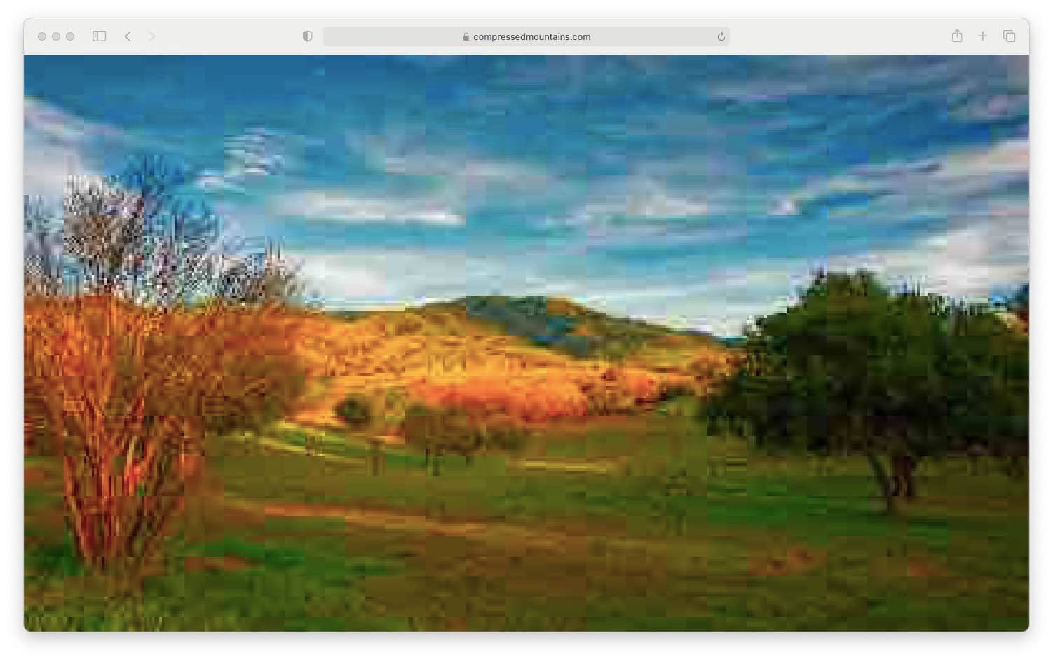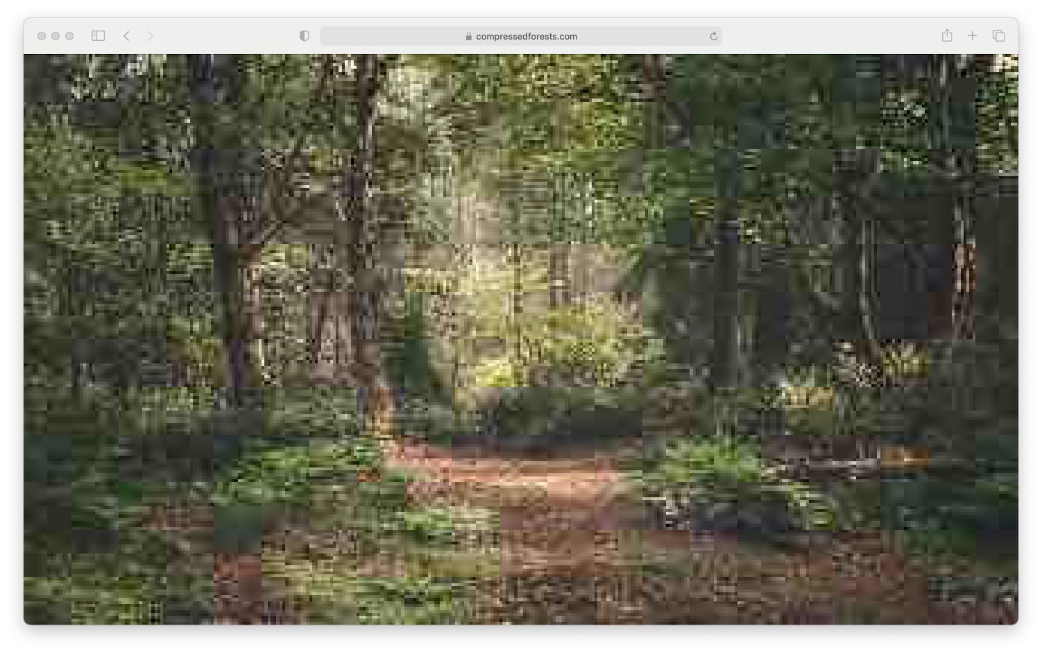 Compressed Landscapes is a series of websites designed by Dutch artist Jan Robert Leegte currently on display at the Van Gogh Museum in Amsterdam. The websites show the results of the calculations of an algorithm scripted by Leegte which scans online photography databases and randomly selects images with queries like “mountains,” “forests, or “sunsets.” Having found an image, the algorithm then compresses the file to create a raw computational impression of a delocalized landscape. The resulting low-resolution images generated by this process are beautiful in a way that challenges preconceptions regarding what makes a digital picture enjoyable. The blocky squares of colors that make the pictures look raw, untamed when displayed on a clean, smooth digital screen in a way that reminds me of the thick brushwork present in Vincent van Gogh’s late paintings.