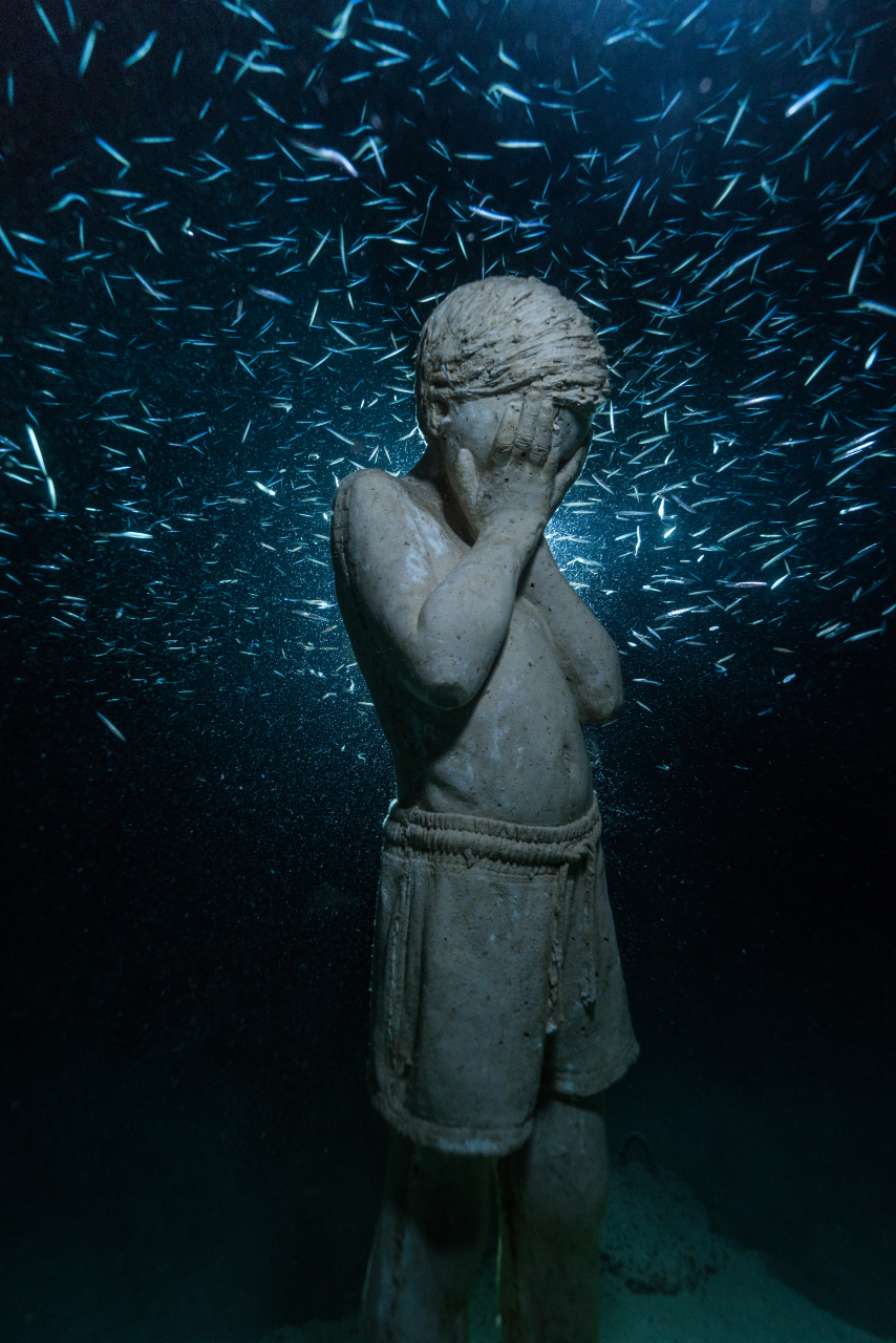 Taylor, a former diving instructor, is known for creating immersive submarine installations in different parts of the world. In past projects, he submerged hundreds of sculptures in the waters of countries like Spain, Australia, Mexico, and France. Taylor's sculptures are made of sea materials — stones, rocks, and shells — and are meant to be inhabited by marine life.