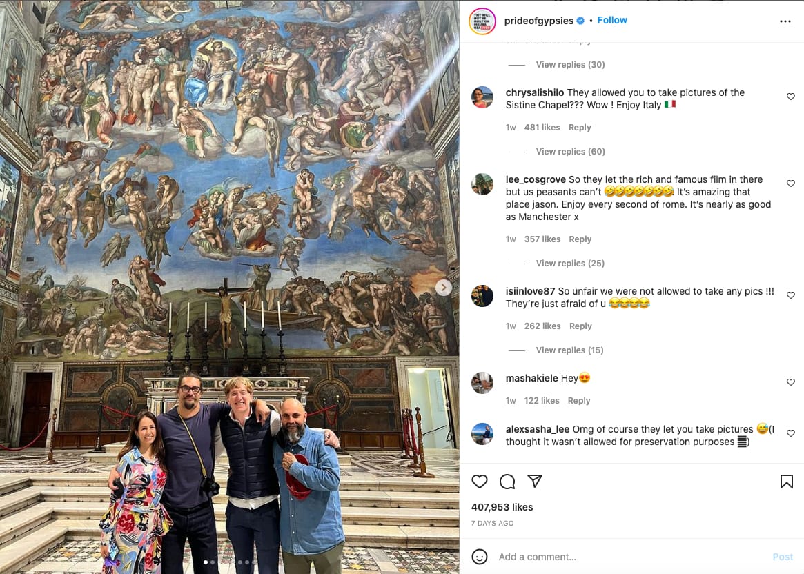 Aquaman Star Jason Momoa Slammed for Photos Inside Sistine Chapel