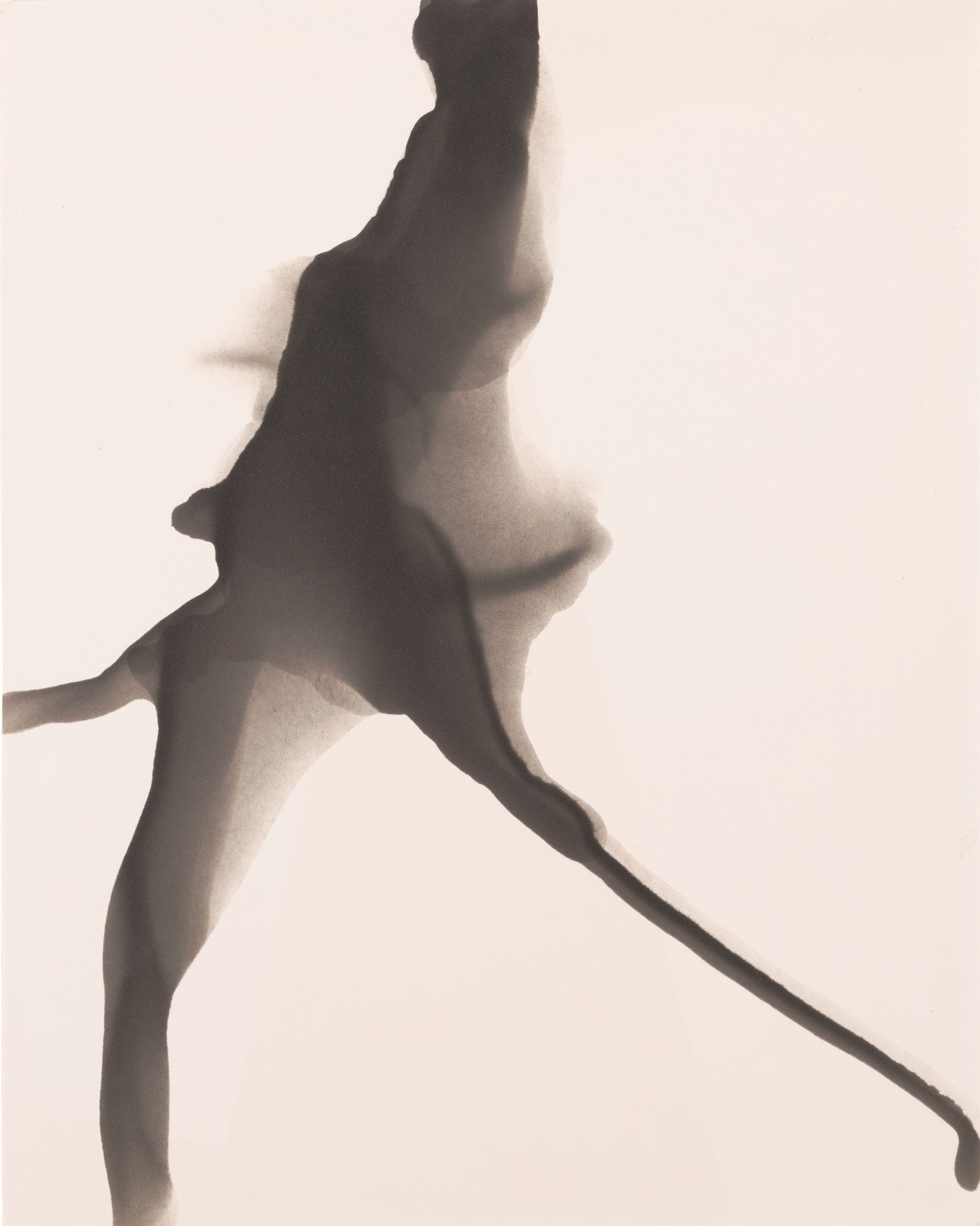The work is heavily indebted to Surrealism, an influence that DeFeo openly acknowledged; in a group of images collectively titled Salvador Dalí’s Birthday Party (1973), she painted chemicals onto light-sensitive paper, creating amorphous, dreamlike landscapes that appear to melt like one of Dalí’s clocks. Most significantly, she discovered an artistic kinship between herself and the Surrealist group’s chief photographer, Man Ray, who valued experimentation over technical perfection. To DeFeo, Man Ray’s explorations of photographic abstraction must have read as a liberation, justifying her impulse to build up the material texture of her images and embrace chance in the darkroom.