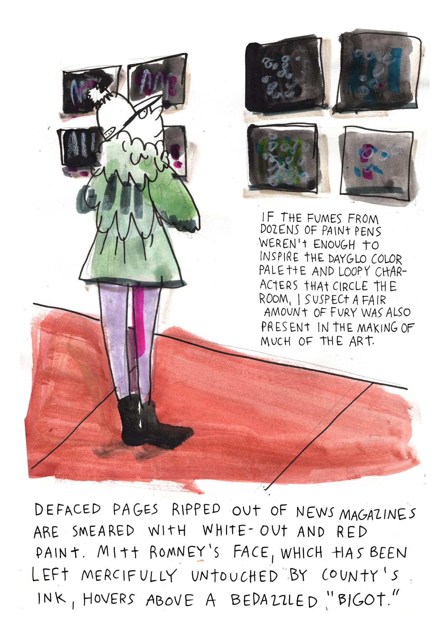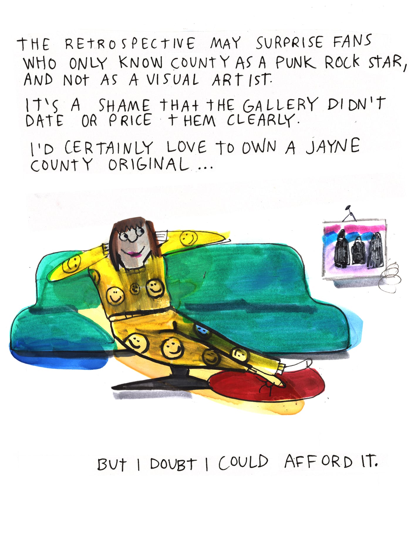 The punk rocker's first retrospective features sloppy queens, peacock-print dildos, and angry pepper grinders in high heels.