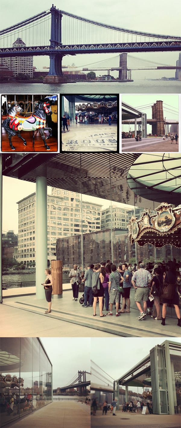 Jane’s Carousel is located in the DUMBO section of the Brooklyn Bridge Park (on the Brooklyn side of the East River, between the Manhattan and Brooklyn bridges). Hours and direction can be found at janescarousel.com.