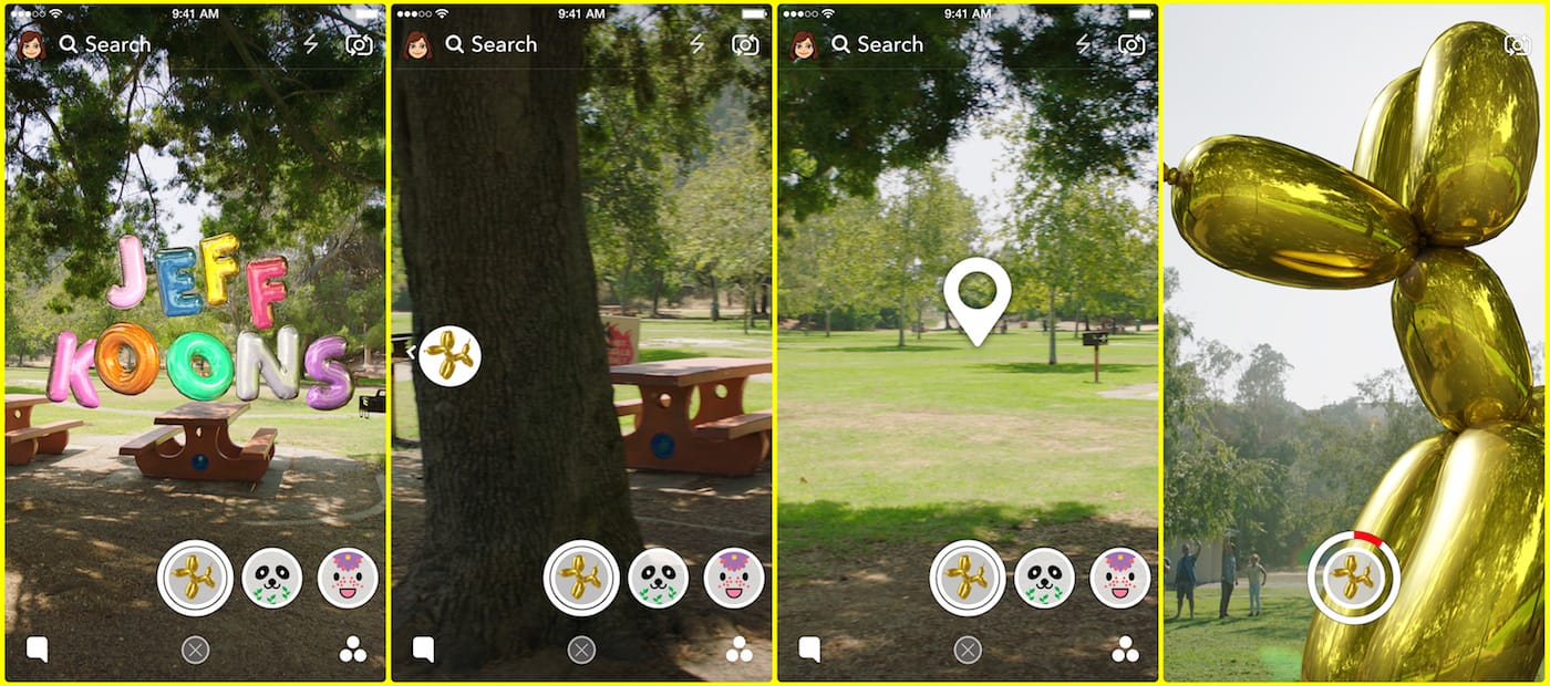 The new "Jeff Koons Lens" allows Snapchat users to find augmented reality versions of Koons's shiny sculptures in parks around the world.