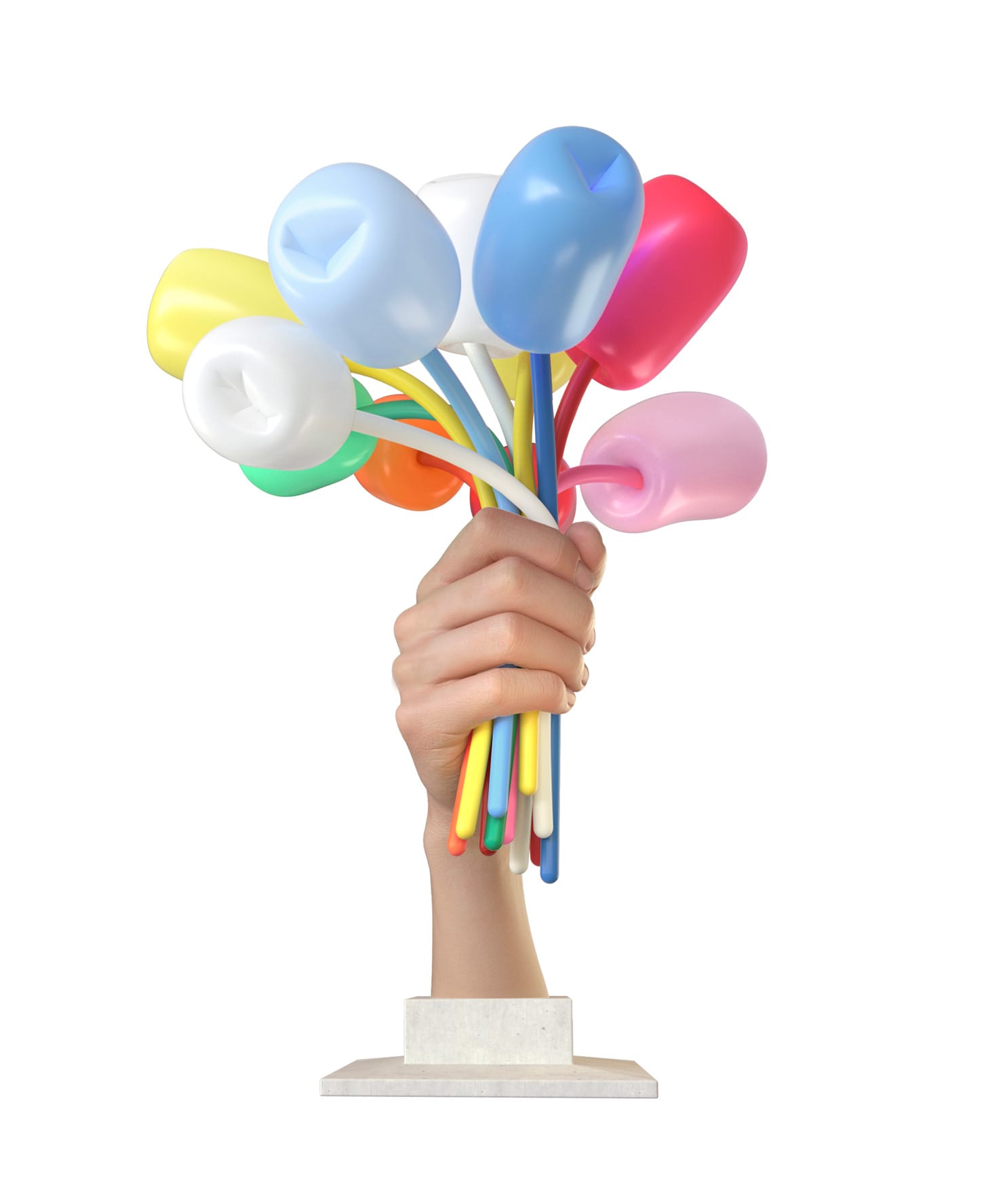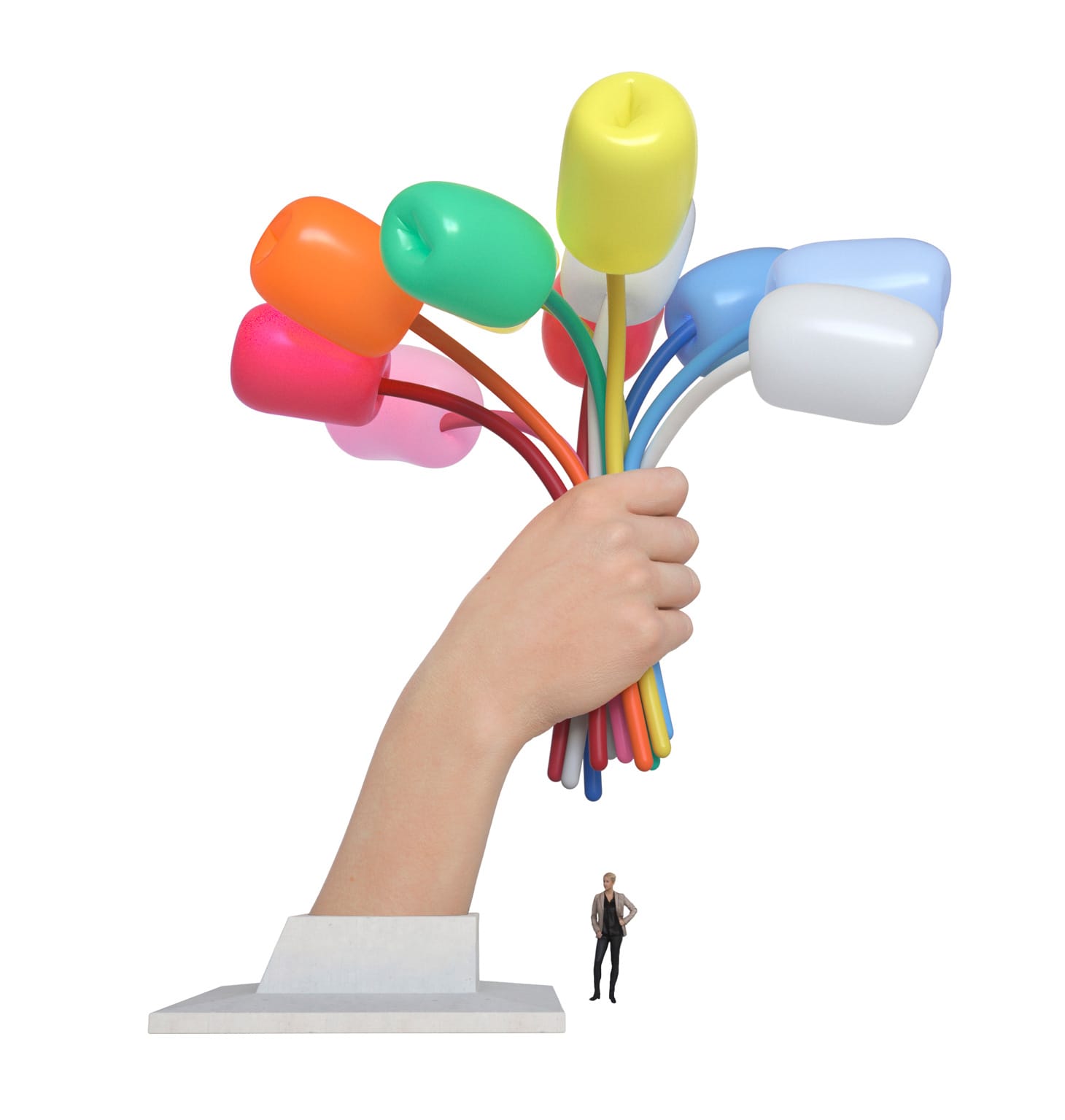There is nothing intricate or subtle to engage with here. As a consequence, it is not a sculpture that needs to be interacted with imaginatively. Based on the renderings, “Bouquet of Tulips” is never more effective than discursive; never more enigmatic than dogmatic. It is like the man himself, with his apparent and insistent smiling cheeriness, which recalls to me the Scientologized Howdy Doody who stood apart and watched when I threw a wild party in the late 1970s.