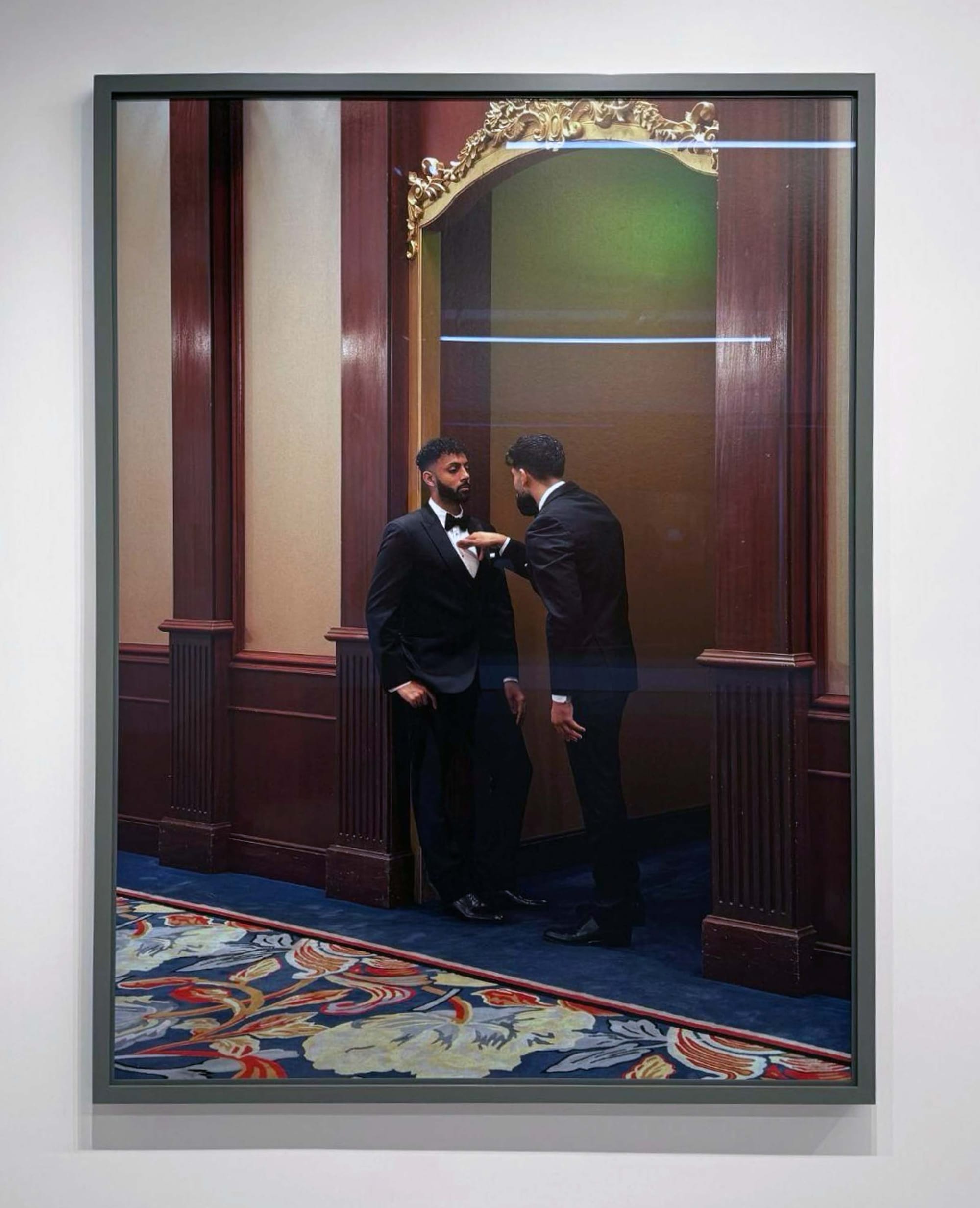In “Event” (2021), two theater ushers are seen mid-argument, one man angrily thrusting his finger toward the other's chest. Did his coworker steal his shift? Is the play about to happen, or did it already happen? Or consider Wall's famed “In front of a nightclub” (2006), where a throng of sidewalk dwellers appears to pulse with club night energy and expectation. The dramatic tableaux intentionally leave space for empathy, calling up sensory responses that move us beyond merely observing the scene. They invite us to imagine the sounds, the temperature, the drama just before and after the action. They demand and train an increasingly rare form of sustained attention simply through the arresting magnetism of his imagery.