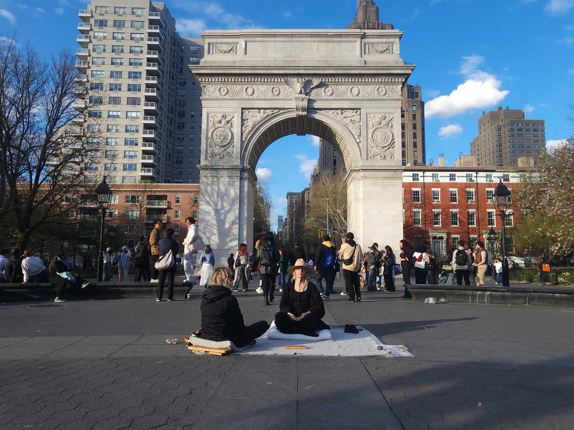 In a 10-day meditation, Jemila MacEwan silently nurtures a seed in the palm of their hand amidst the hustle and bustle of the iconic public park.
