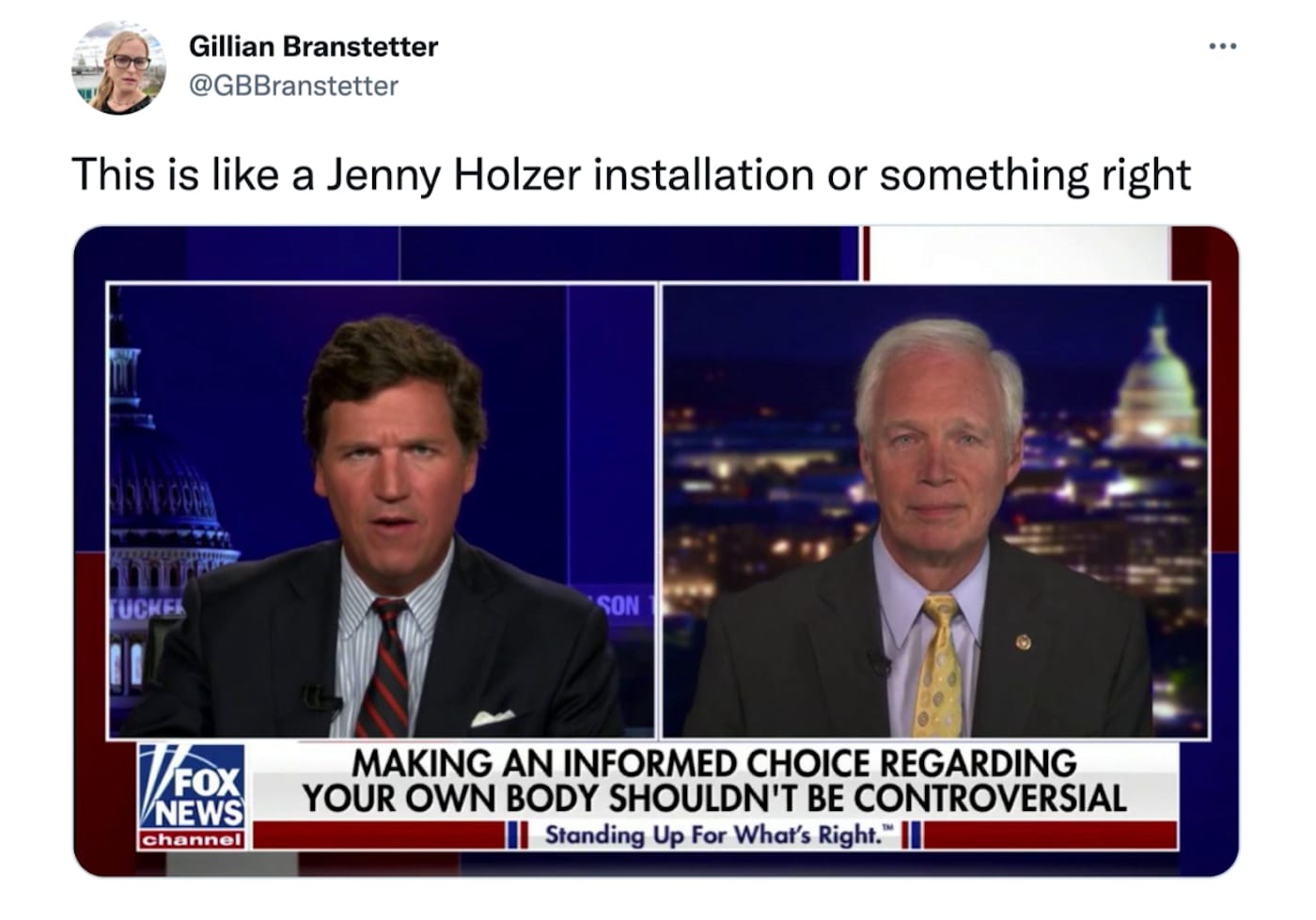 The Tweet comparing an ominous screen capture from the Tucker Carlson Show to one of Holzer's Truisms is being sold as an NFT to benefit crucial organizations in the wake of the Supreme Court decision.