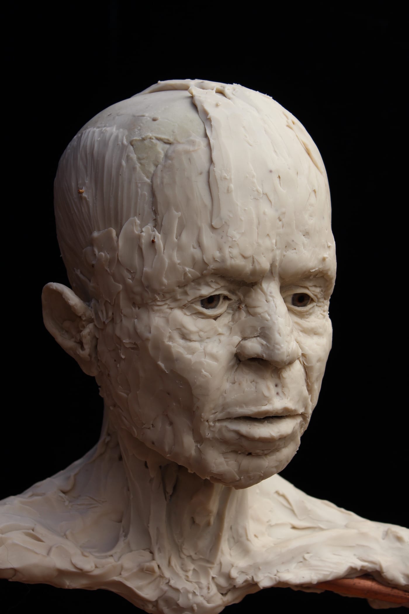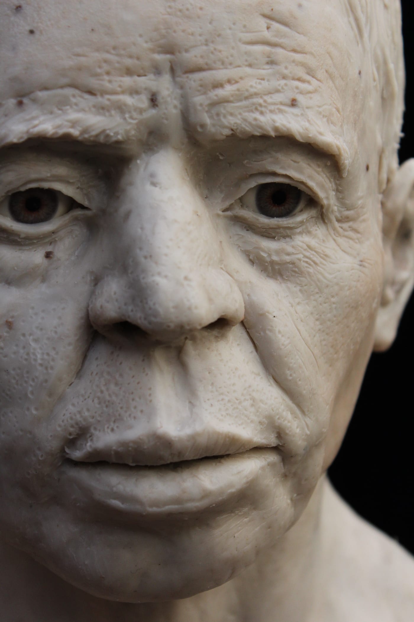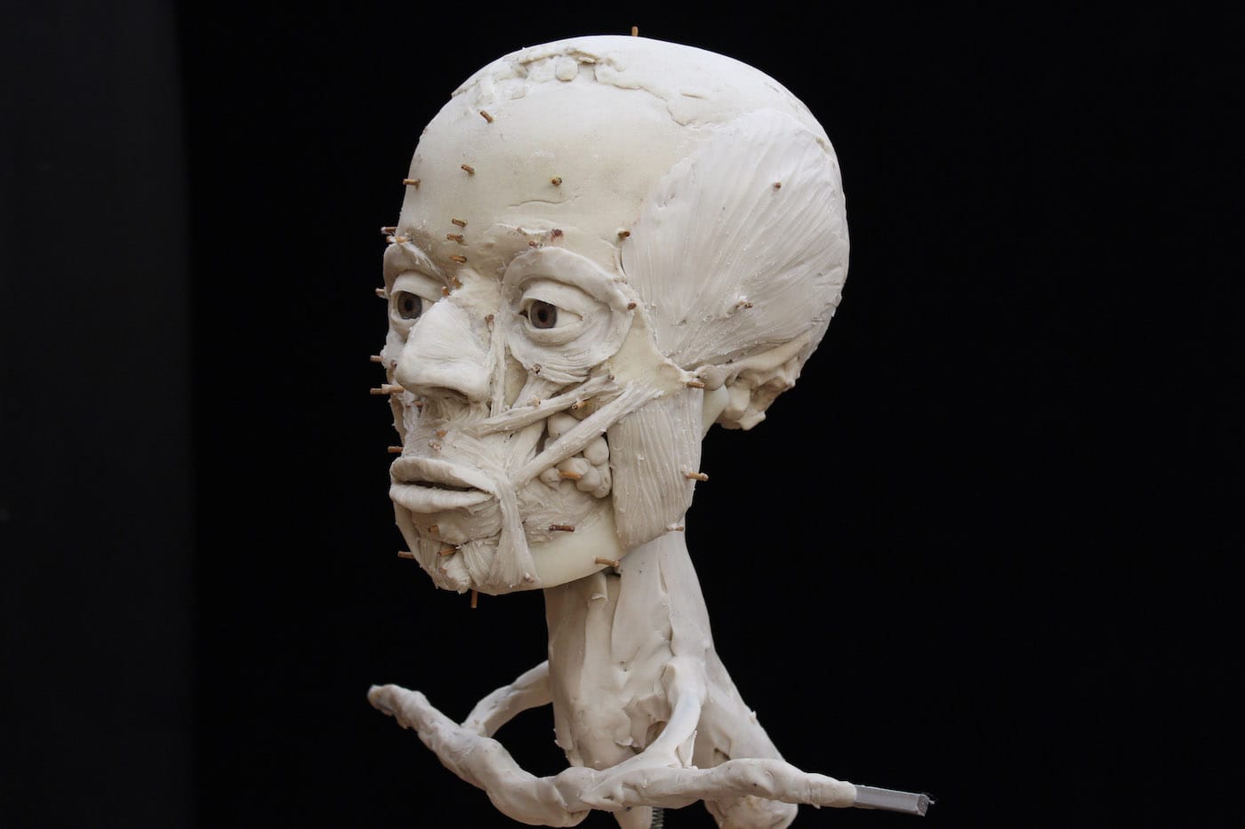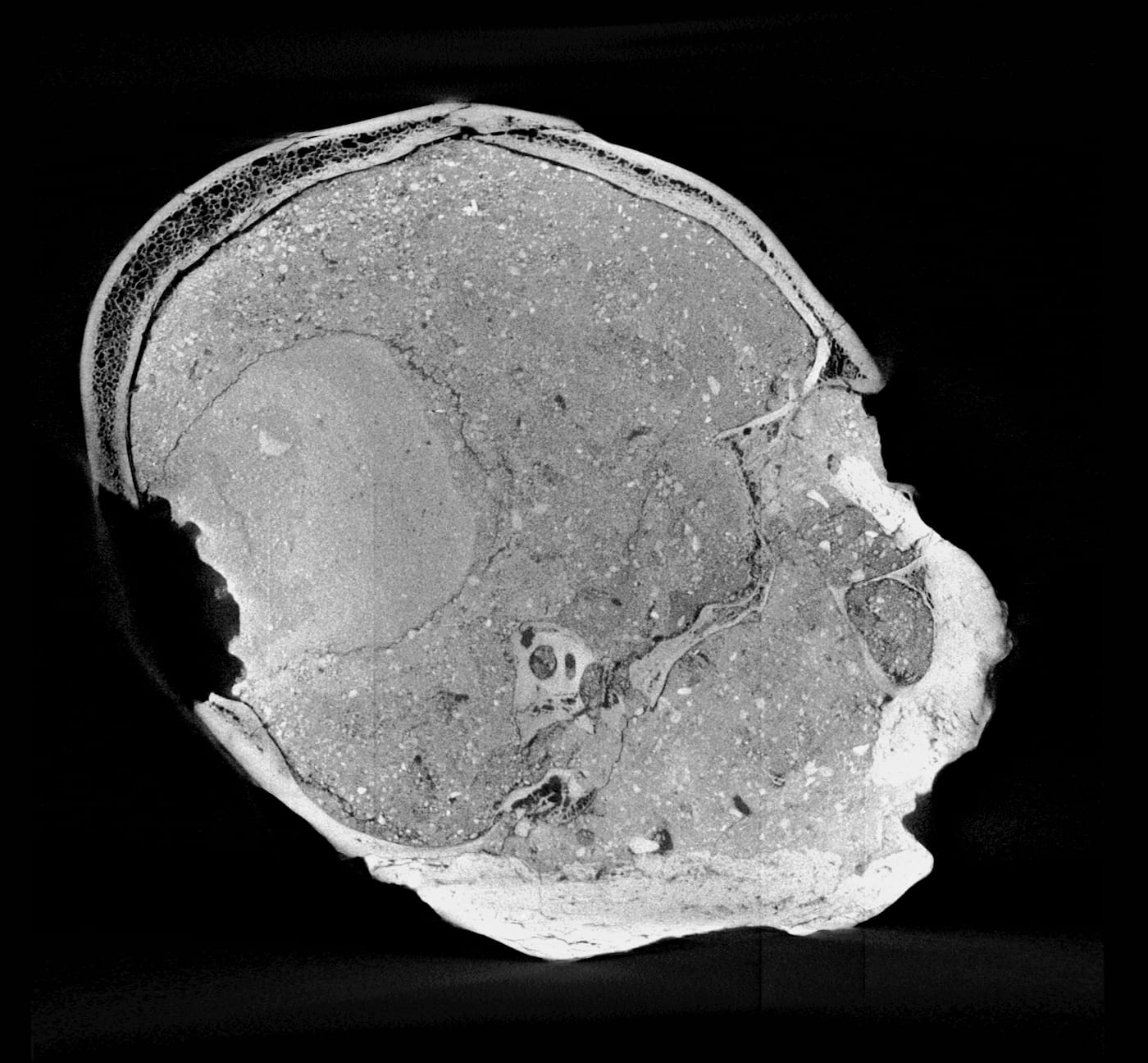 The imaging team conducted its own sculptural process, but one, of course, aided with the latest digital technologies. Experts first digitally separated the shape of the skull bones from the overlying plaster then converted data from a micro-CT scan to create a 3D-printed model of the cranium. As the mandible was not present, the team added a lower jaw constructed based on data from other known examples of human mandibles of similar age and geographic origin. The face was then built over the skull model — this time, in a more traditional sculptural process: experts used clay and wax to build features from the bone-up, muscle by muscle, creating every anatomical detail before topping it off with a clay layer of tissue and skin. Finally, they made a mold of the head from which the displayed face was cast in Jesmonite — essentially a mixture of gypsum and acrylic resin.