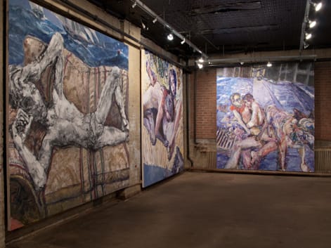 Jim Herbert’s paintings of naked lovers are not for the feint of heart. At first glance, viewers might want to look away as though catching a glimpse of a couple kissing. And some people will totally avert their eyes from these intense canvases. At the opening for the recent show at the English Kills Gallery in Bushwick, Brooklyn, a young couple strolled in, saw one work, and then bolted out the door.