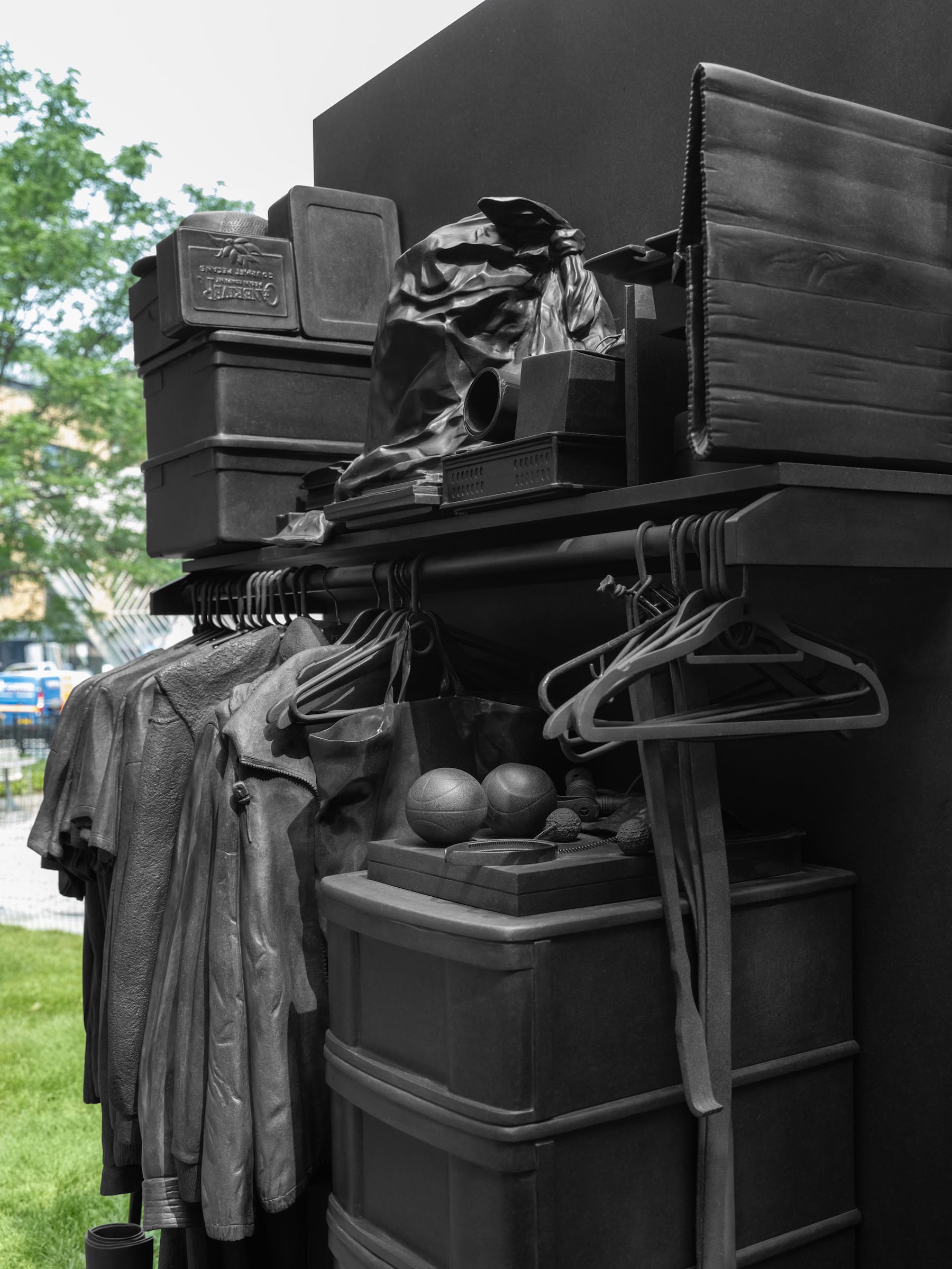 The sculpture is a copy of the closet belonging to New York City musician Craig Ducote, with whom Hodges lived until he passed away in 2016. But although the work’s details and specific name allude to Hodges’s personal experiences, the sculpture focuses on a collective understanding of loss that stretches beyond its origins.