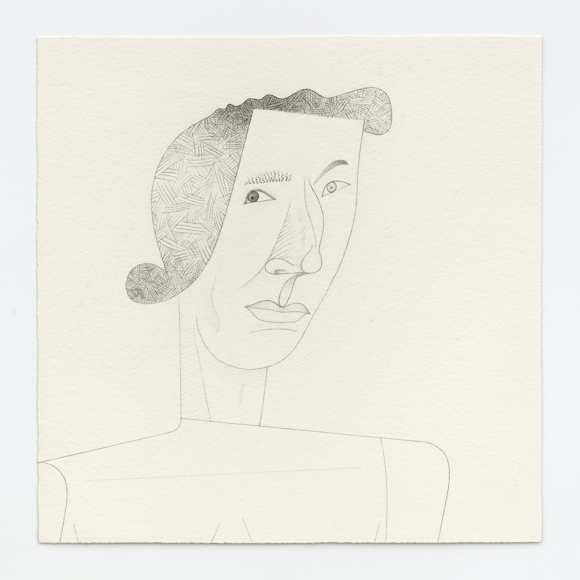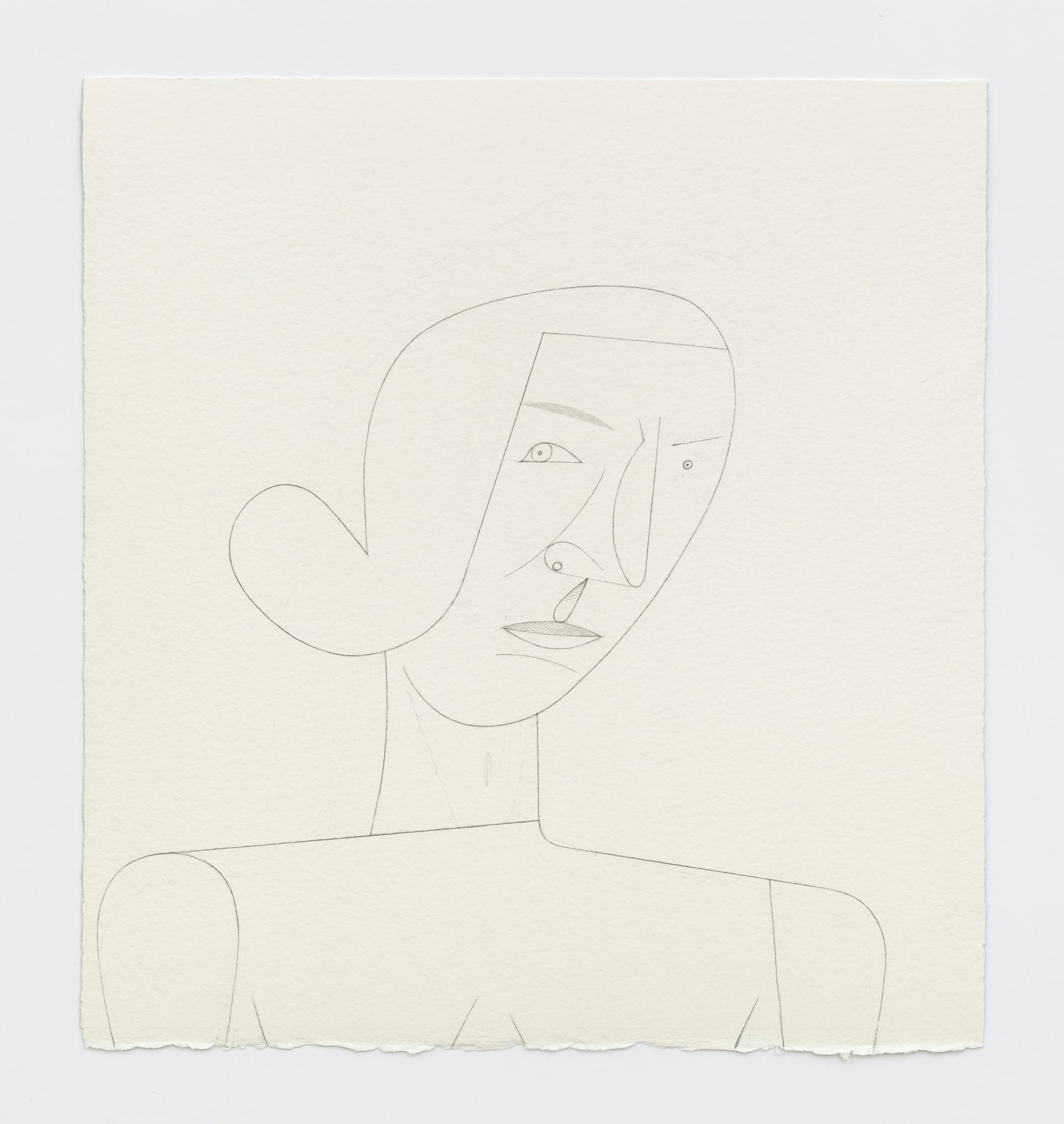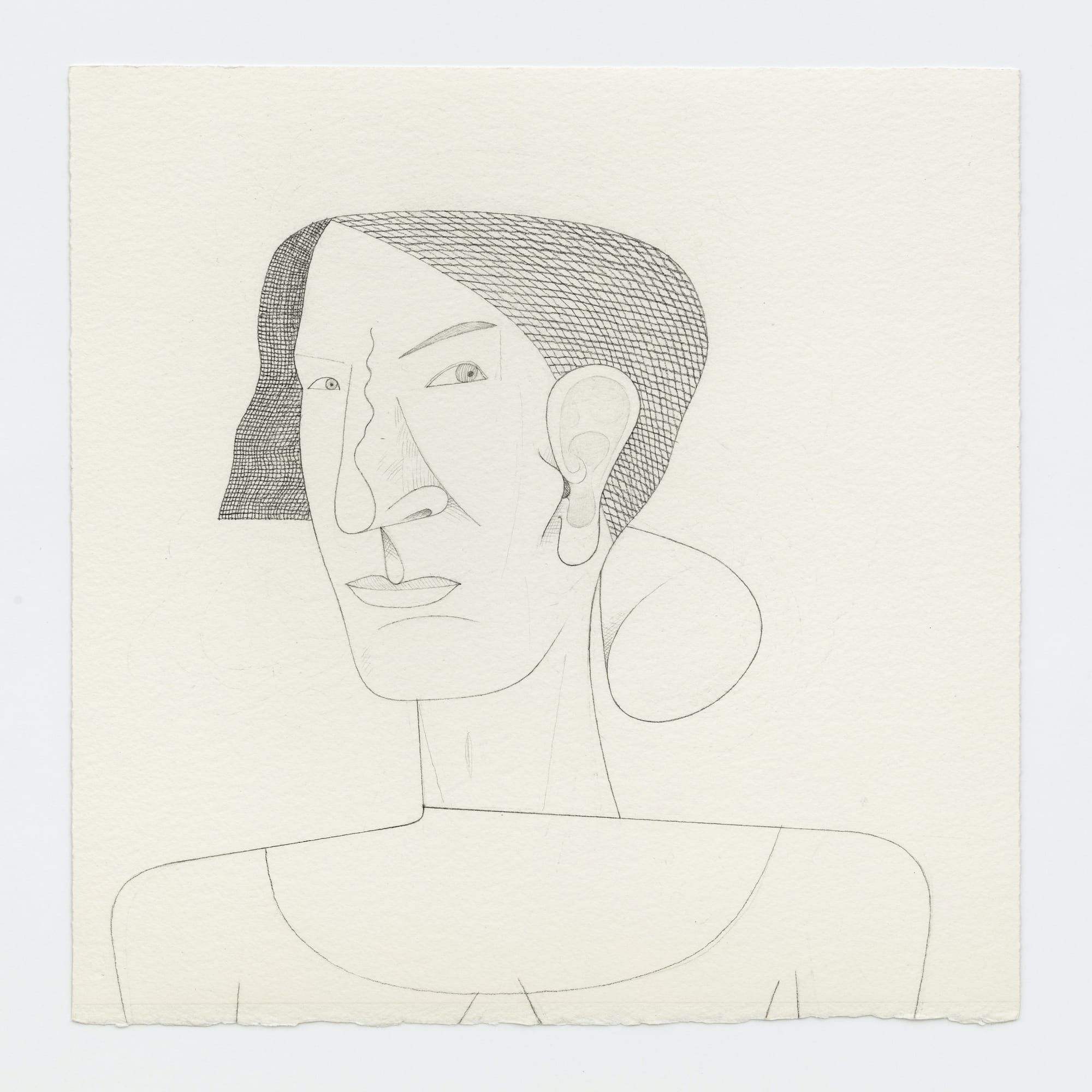 The exhibition includes 19 contour drawings of a woman’s head, all in graphite on toothed paper and dated from the last two years (none larger than 15 by 14 inches). The press release explains: