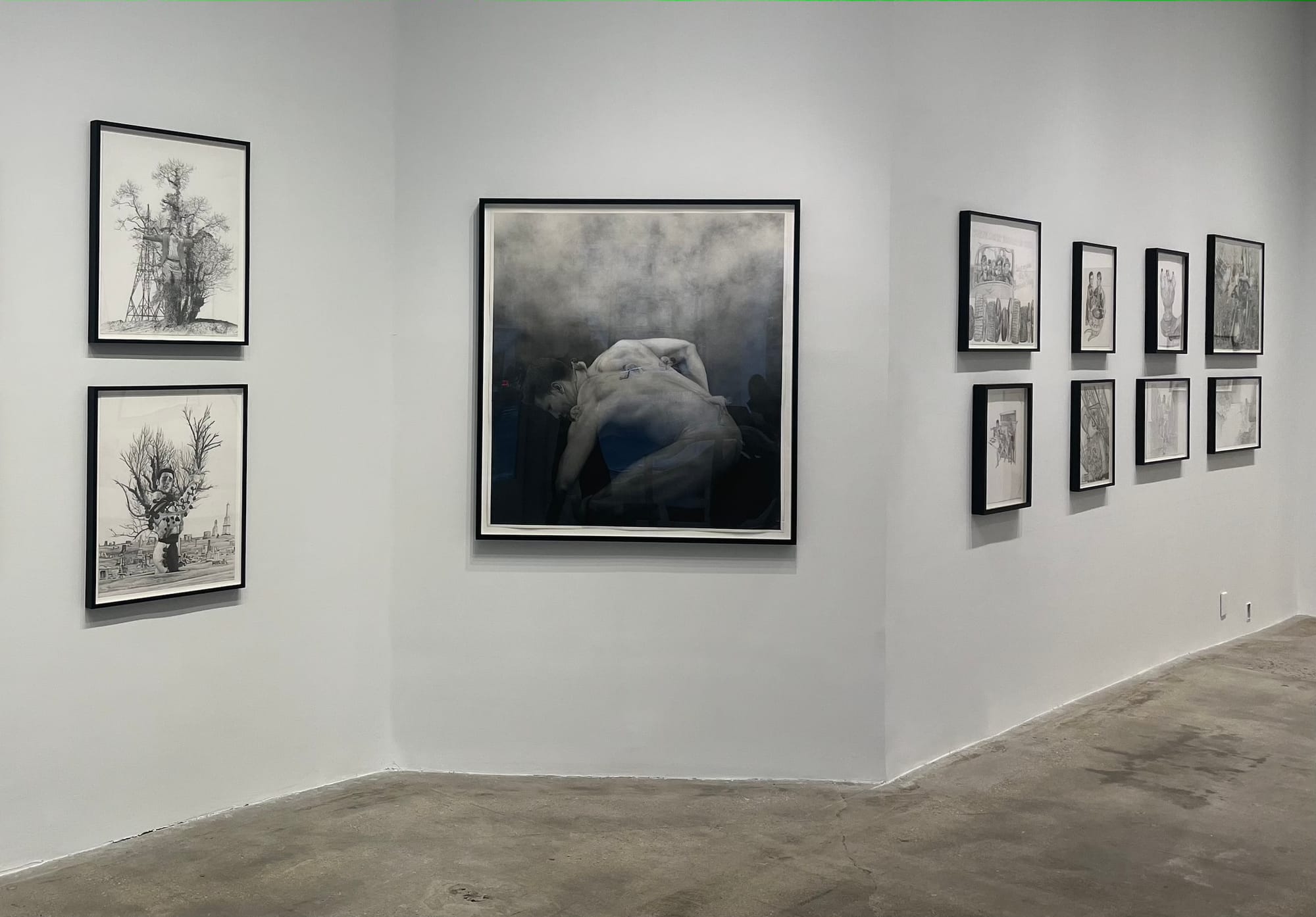 Some of Shaw’s iconography might seem random at first, but the more you connect the dots, the more the insidious and, ultimately, catastrophic work of the US government, law enforcement, and military come to the fore. A 2023 Cultured article refers to the city where Shaw was born and raised as a “small town in Michigan,” but Midland is also the home of Dow Chemical, the company that pioneered plastic and foam products in the US and eventually became the sole provider of napalm and Agent Orange during the Vietnam War. The man in “Crouching Man With Little Figures" could easily be a byproduct of a chemical plant.