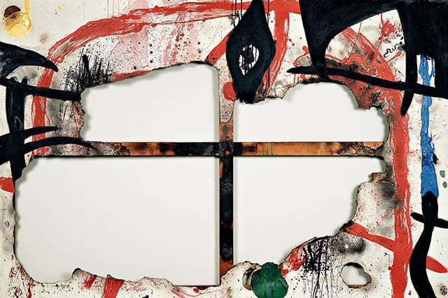 Miró’s notes reveal that the Burnt Canvases took inspiration from a newspaper clipping of some youthful vandalism against the Madrid Stock Exchange; he later told an interviewer that in these works he relished “the joy of being able to say merde! to people who only see art for its commercial value, who think these paintings are worth real fortunes and go around telling everyone so.” The thread of provocation in Miró’s late phase returns us to the boldness of expression put forth in “Aidez l’Espagne.” In the intervening decades the terms and stakes of the politics have changed, but Miró’s capacity for boldness and audacity remain very much in evidence. In the voids of the scorched canvases we sense the ghost of the upraised fist.