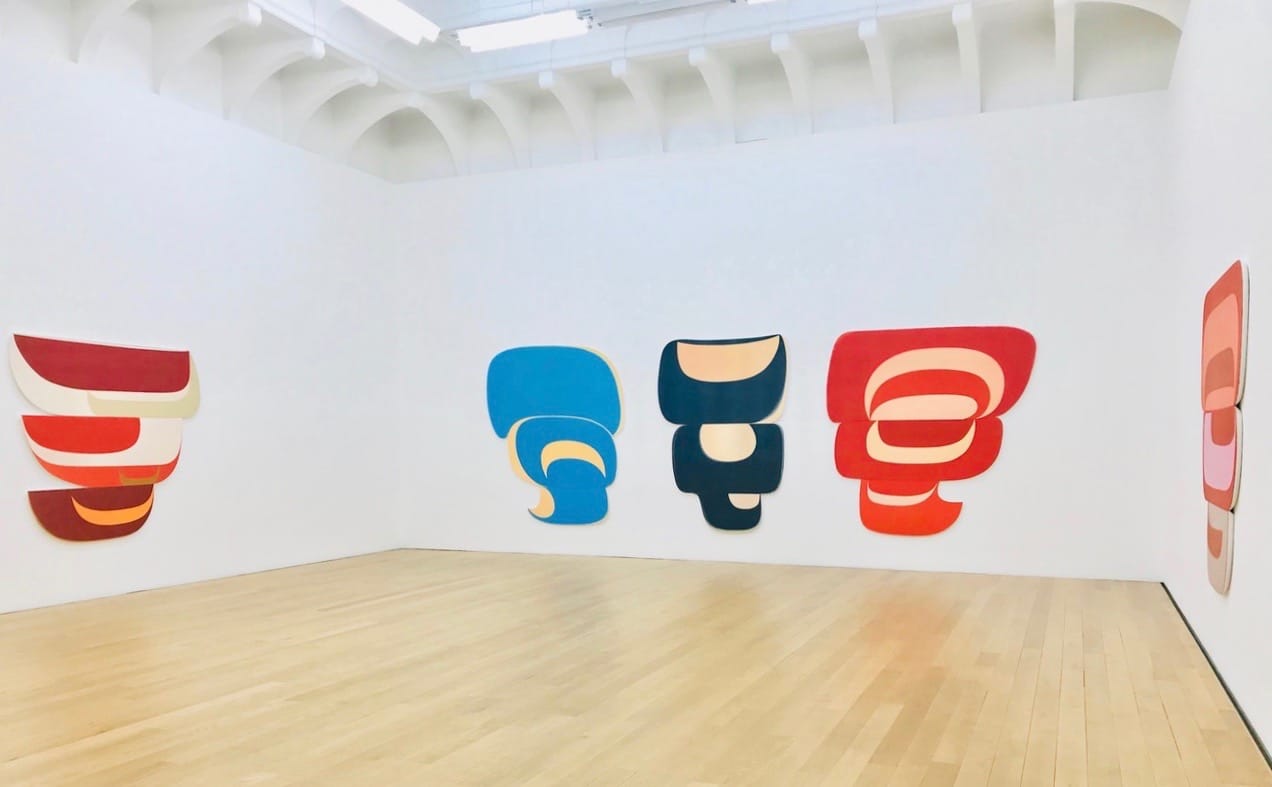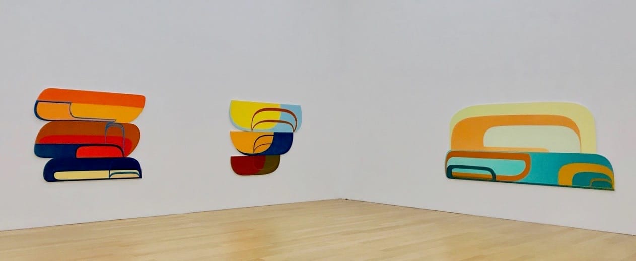 As her statement suggests, she was interested in a state of constant motion, as underscored by the light and sky. The first shaped paintings consisted of two boat-like shapes, with their curved sides facing down, stacked one on top of the other. While some critics have seen these works as being influenced by Northwest Coast Indian art and the Indian Space Painters, such as Steve Wheeler and Peter Busa, this is not the case. They were inspired by a terrain in which the changing light is often dramatically embodied by its interactions with the landscape.