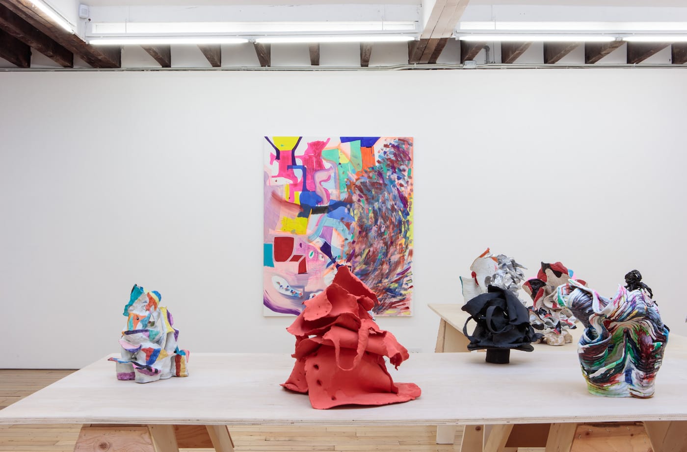Joanne Greenbaum: New Paintings and Sculptures continues at Rachel Uffner (170 Suffolk Street, Lower East Side, Manhattan) through July 1.