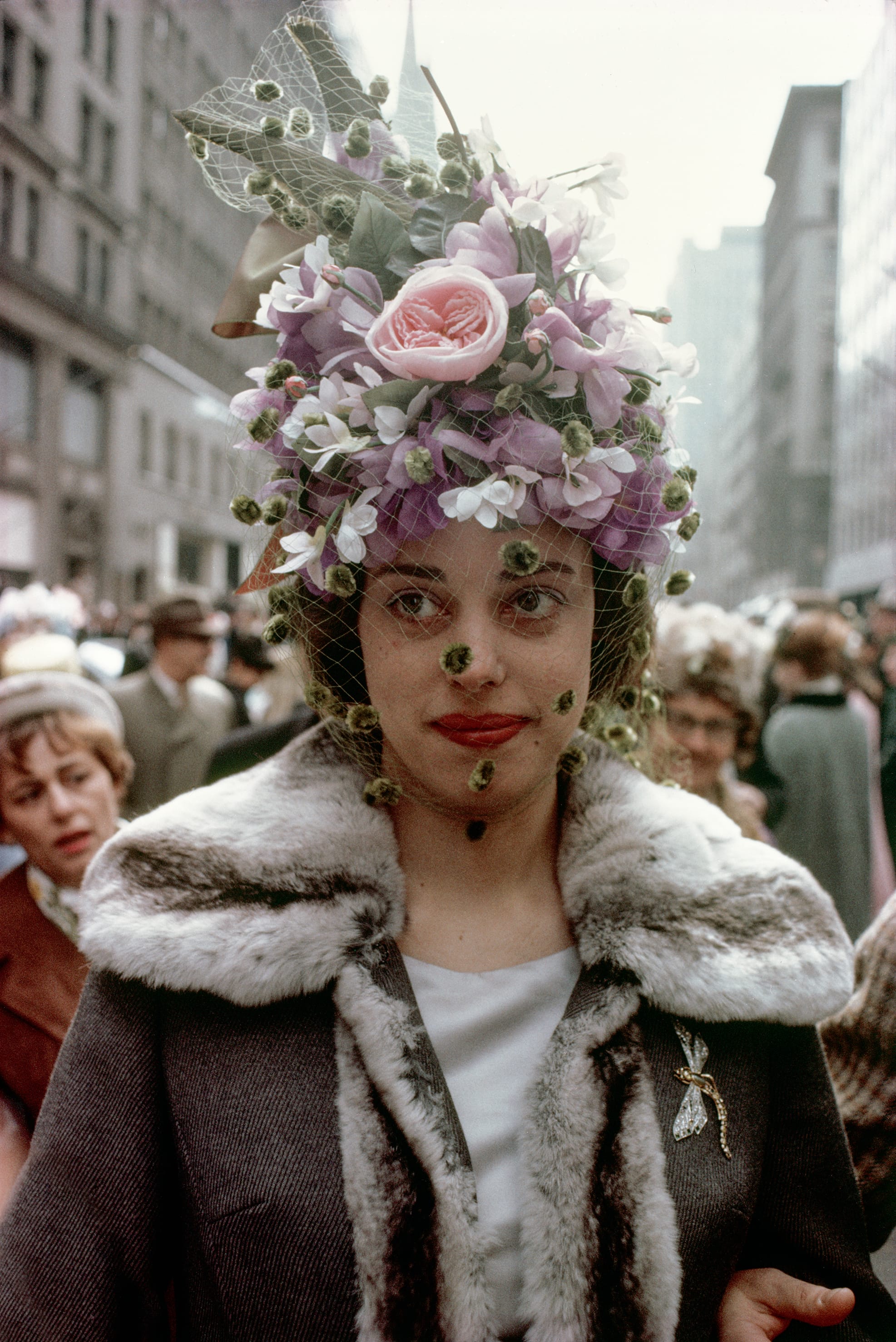 From a smiling woman sporting a towering pink, violet, and green floral fascinator to a bucket of hydrangeas perched on a New York hot dog cart and a carefully planned French garden, buds, fronds, and florets that might otherwise serve as accessories or incidental details are the leading characters in Meyerowitz’s collection. The majority of his detail-laden color images were taken in the ‘60s and ‘70s, though a selection from subsequent decades have made it into the expanded, large format edition.
