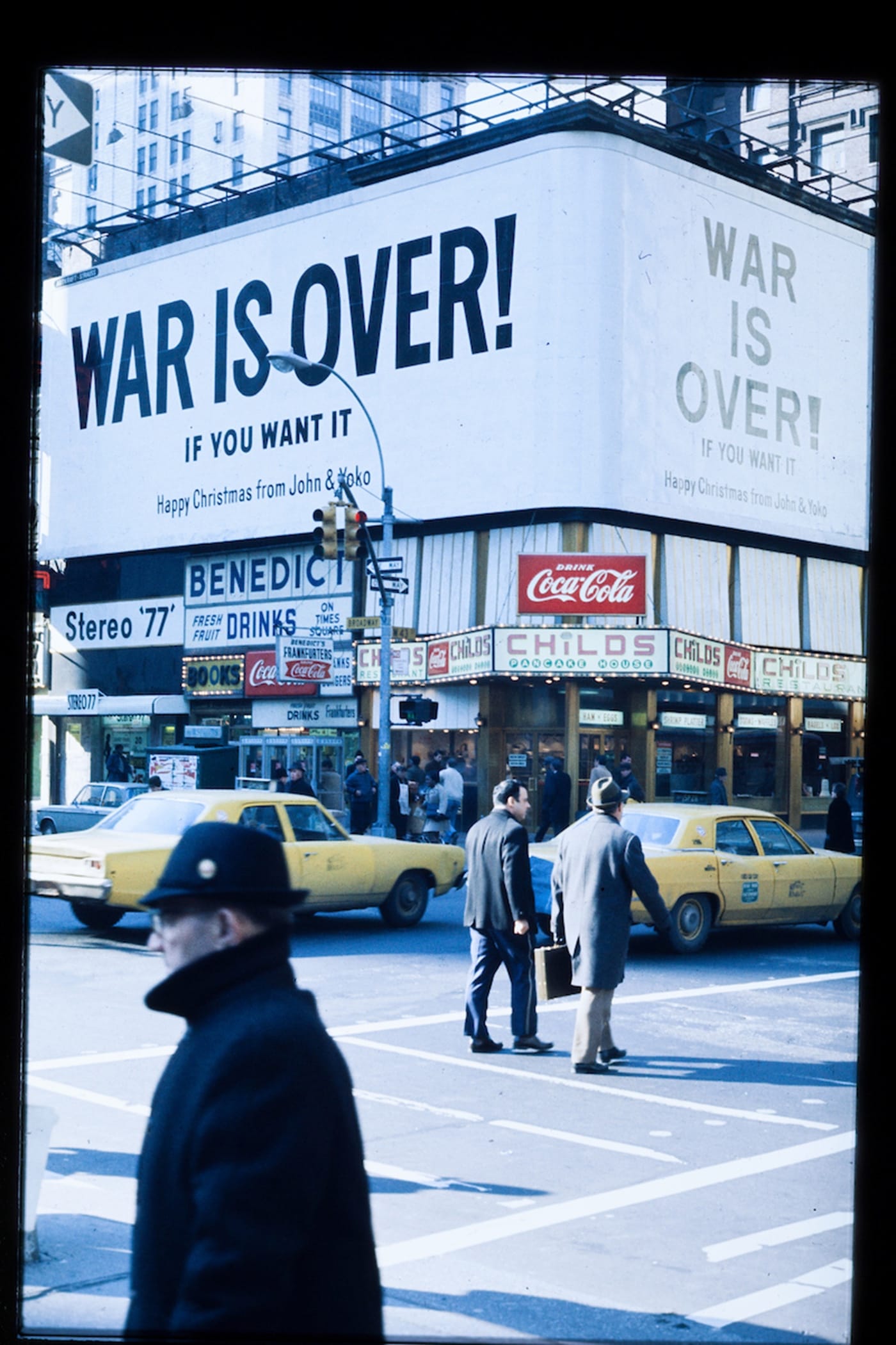 In a short film containing interviews with Lennon and Ono that was shot in 1969, and which Yoko posted on YouTube a few years ago, the then still-active Beatle says, “We’re not thinking about ten years. We’re thinking about peace forever. I want peace now. We can get peace now if we want it now. […] Anybody knows that the people have the power. All we have to do is awaken the power in the people.”