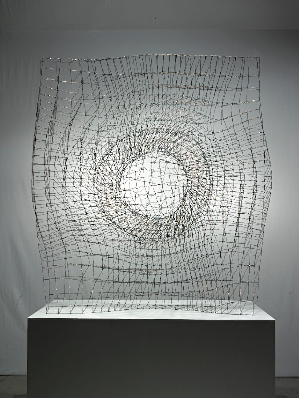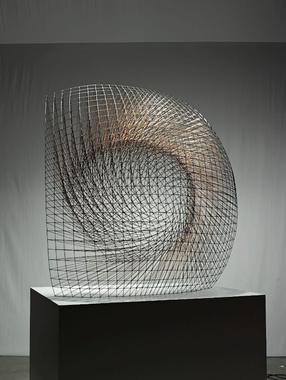 When I mentioned Ruth Asawa and her use of metal wire and a weaving-like process, Pai said that he did not want his work to be flexible nor did he want it to hang from the ceiling. He wanted his sculpture to maintain its form.