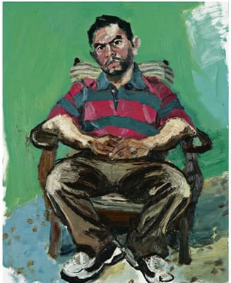 With a raw energy and tension, Sonsini uses the focused gazes of his men to bridge the gap between subject and spectator. More than simple portraits, the works bring new life to the framework of portrait painting. Take for instance the painting “Byron and Ramiro” (2008) where the men’s eyes seem to be communicating something to the audience, causing us to wonder what exactly that might be. The detail of Sonsini’s men, at times carricature-like, is both empathetic and straightforward, capturing the body language and facial expressions of the men to lasting and powerful effect.