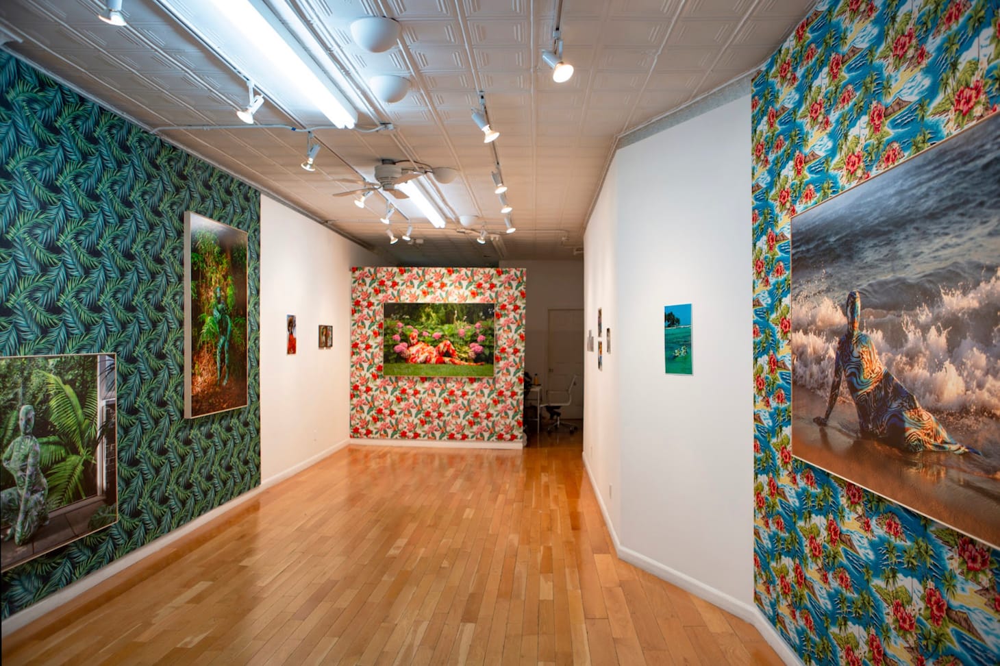 Placing her own body within the frame, Minaya creates and wears brightly patterned bodysuits sewn so as to force the wearer into a particular pose, transforming them into an odalisque or a siren. These loud and colorful suits are worn in self-portraits, captured in convincing yet artificial natural environments. Such picturesque tropical landscapes parallel the exoticization of Dominican women — a social fabrication that exists in tandem with the presentation of (un)natural tropical landscapes designed to uphold a colonial vision of Caribbean authenticity.