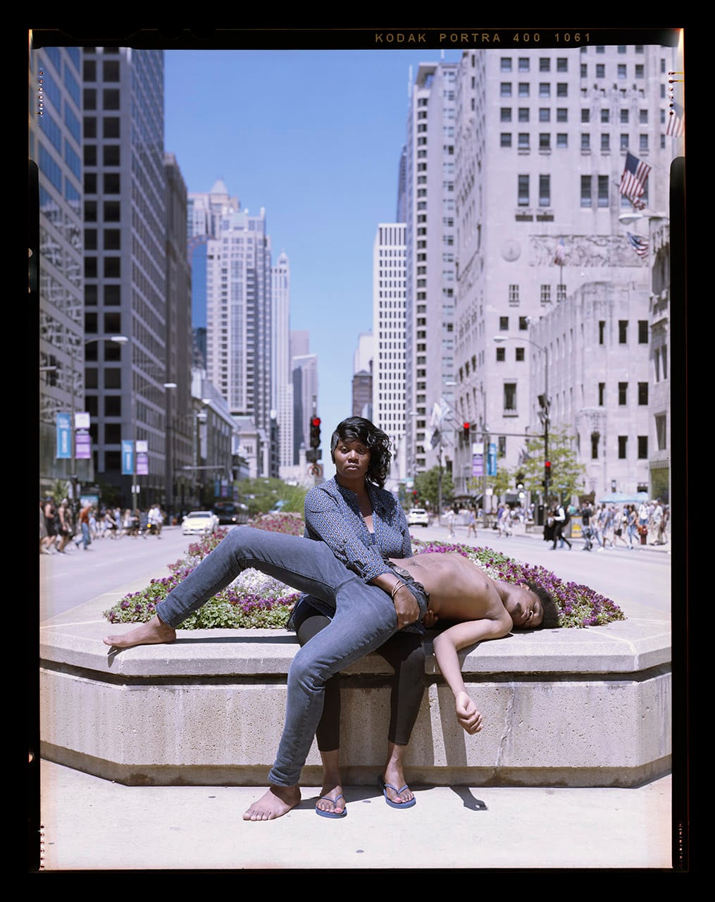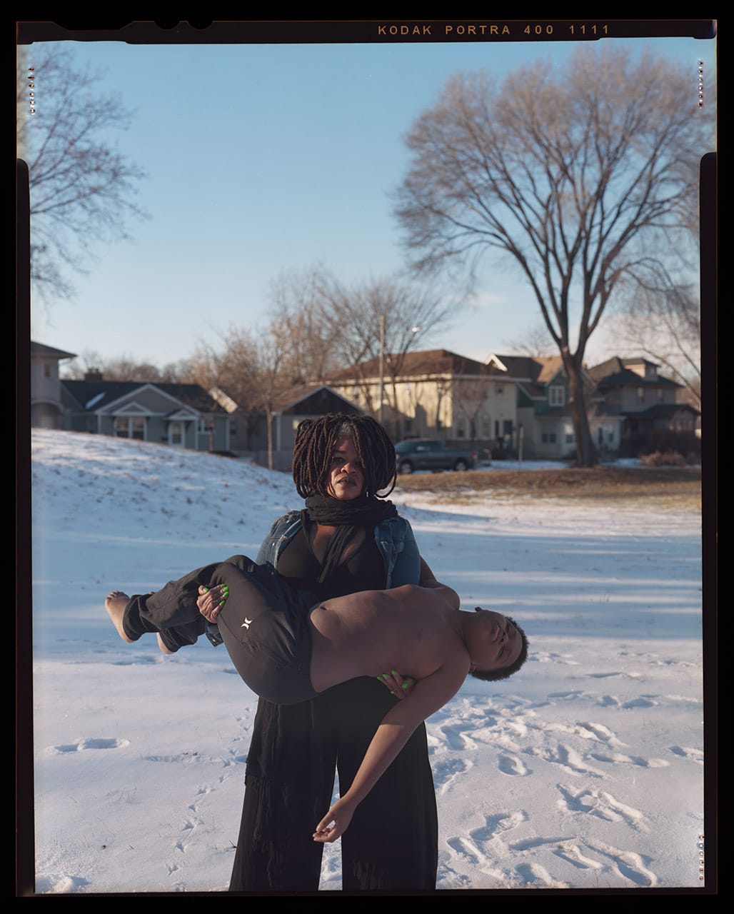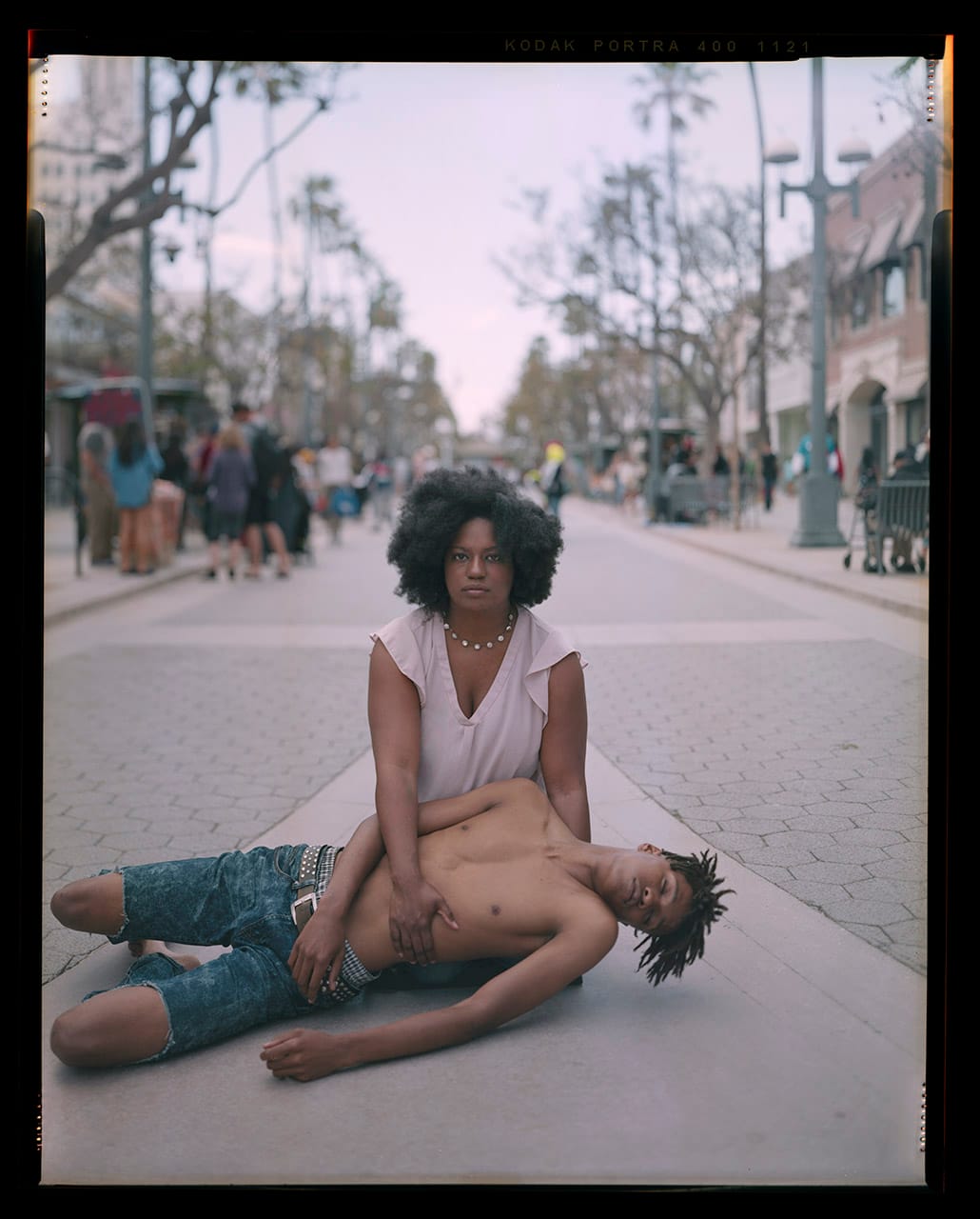 In Stranger Fruit, Henry photographs American mothers with their sons in a pietà-like arrangement, reenacting the pain for loss that is too common for Black families in the United States.