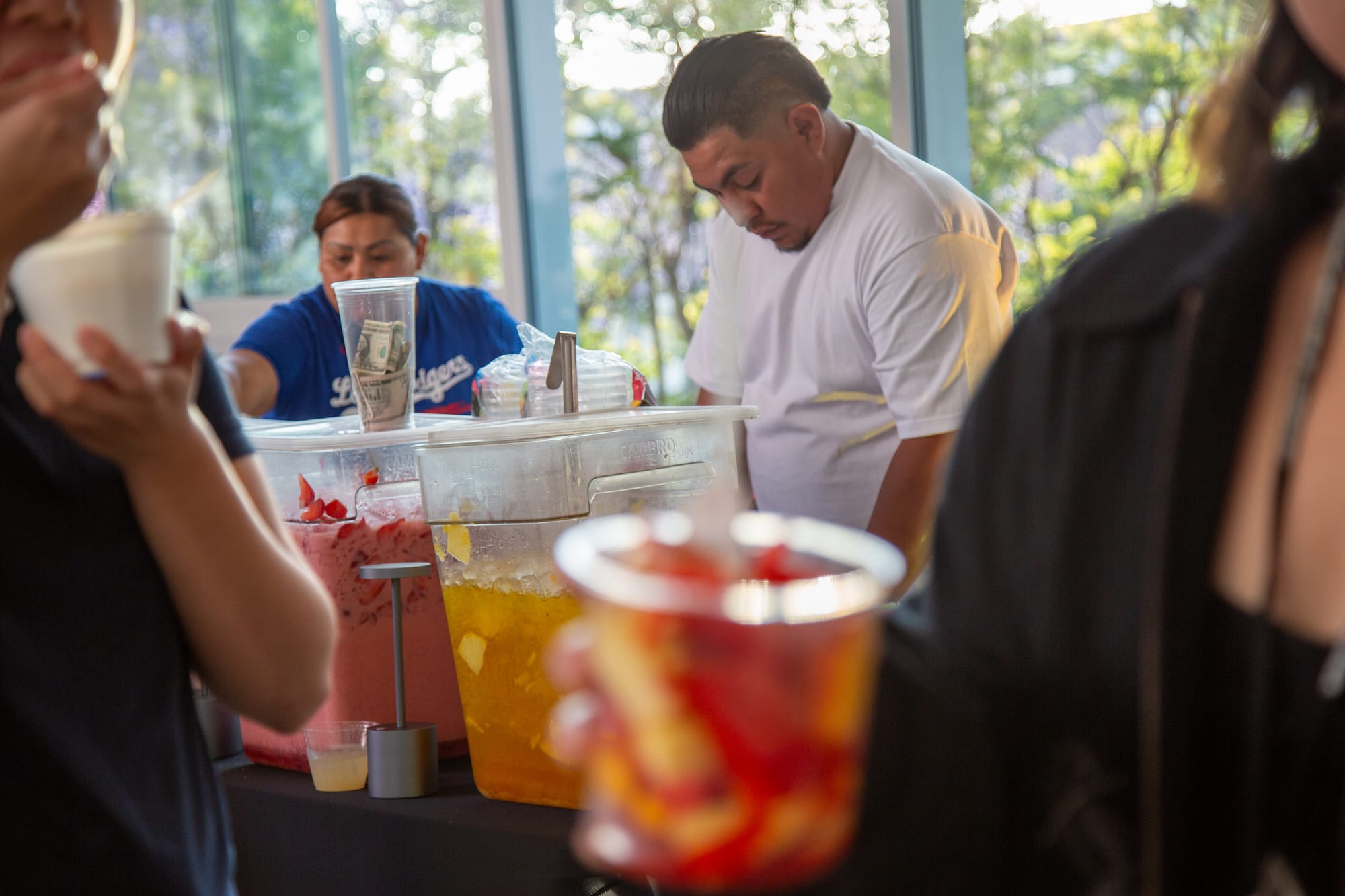 In 2023, Cruz participated in Ruben Ochoa’s installation at Frieze LA, selling fruit to peckish fairgoers. It was the first of several collaborations between Cruz and Ochoa at cultural events, including KCRW’s concert series at the Hammer Museum and the Inner-City Arts Gala, both in 2023, and the 2024 Snapchat Summit. Ochoa views these culinary activations as a form of support and advocacy for street vendors and a way to showcase the critical yet undervalued role they play in LA’s cultural and financial economy.