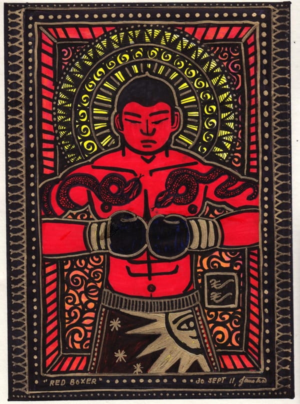 But rather than appear like cultural mix-and-match, the synergy of aesthetic and cultural traditions gives the work its unique impact. Indeed, his drawings reflect the cultural melting pot of the Philippines, an archipelago nation influenced by multiple cultures in its long history. Ultimately, however, his work draws deeply from Jungian psychotherapy techniques, which can rely on art and visualization as a means of understanding the psyche.