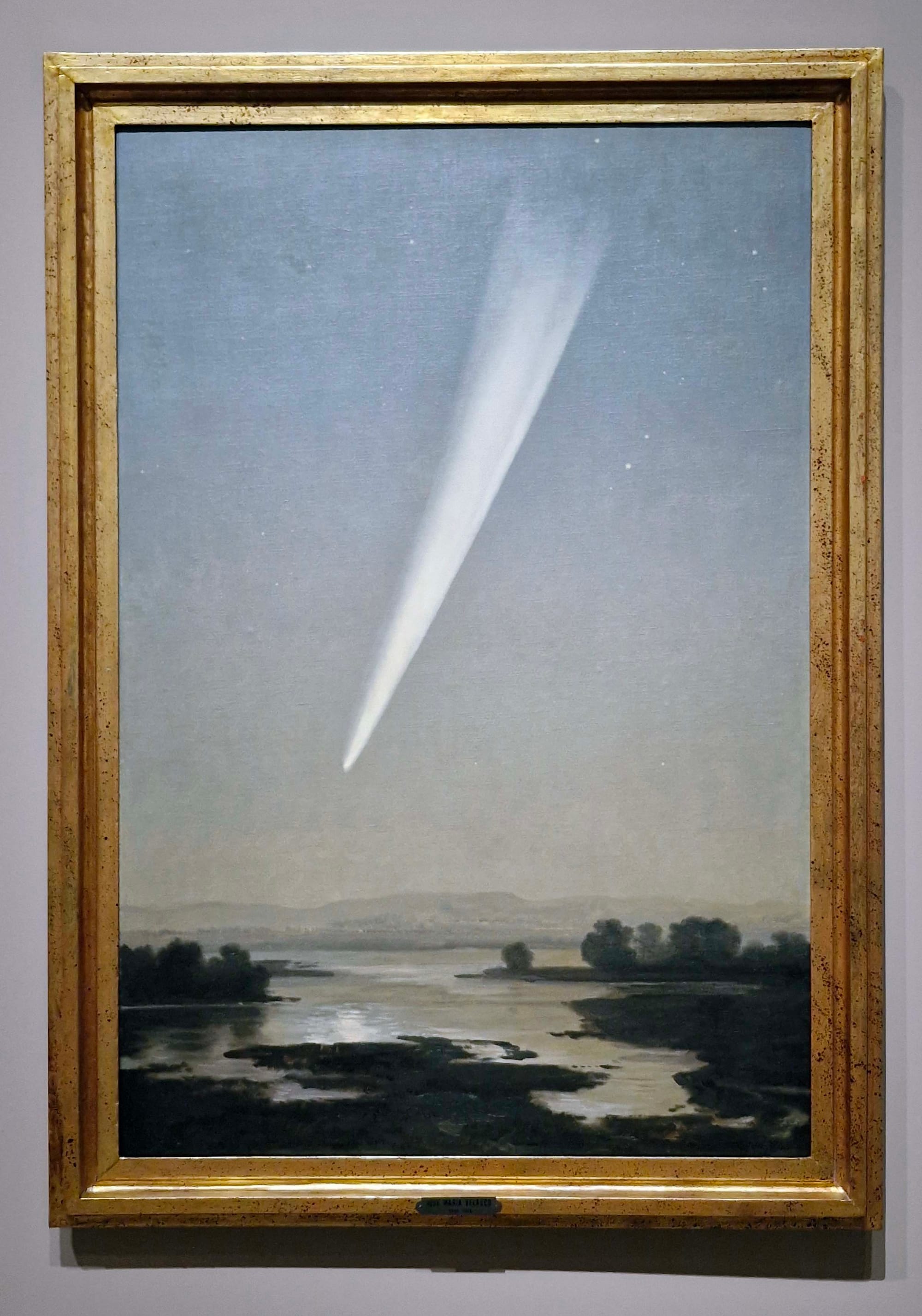 Later works, following an accident that limited Velasco’s mobility in 1901, are more lyrical; still, there remains that quietness and subtlety, as well as that persistent monumentality. Most striking is “The Great Comet of 1882” (1910), which records from memory a phenomenon he witnessed decades prior, a singular white whoosh bisecting a softly graded but otherwise totally plain sky. That it portends the Mexican Revolution of the same year, as the caption suggests, however, may be wishful interpretation, a single clanger amongst otherwise sensible exhibition text.
