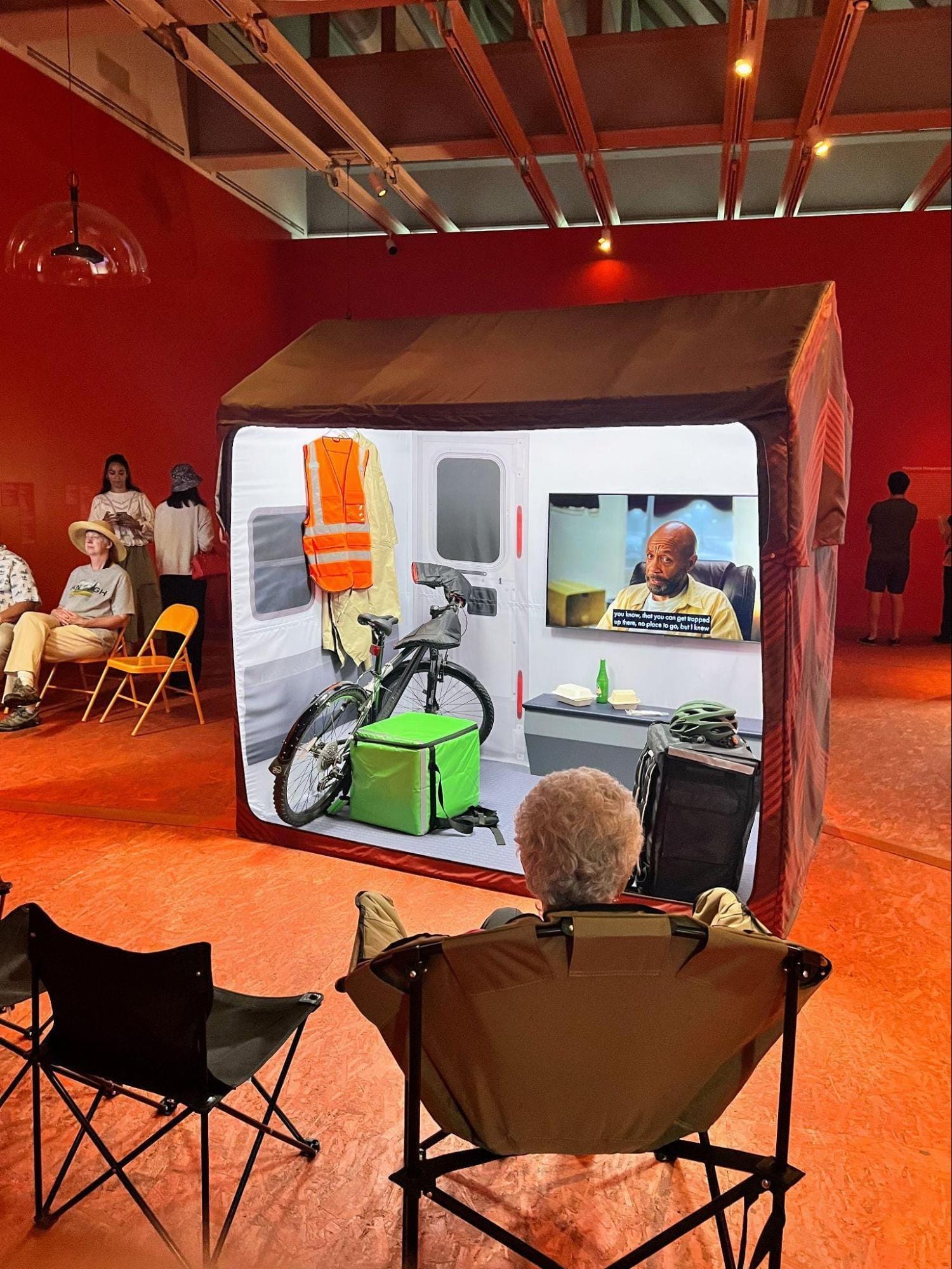Working people: Videos of real-life working-class people talking about work, along with disembodied 3-D prints of workers’ hands and heads.
