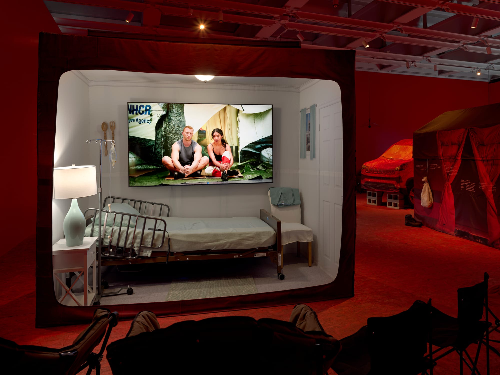 The environment: Tents that show how low-income people might live, a movie about rising water levels in future Manhattan, and some models of melting buildings.