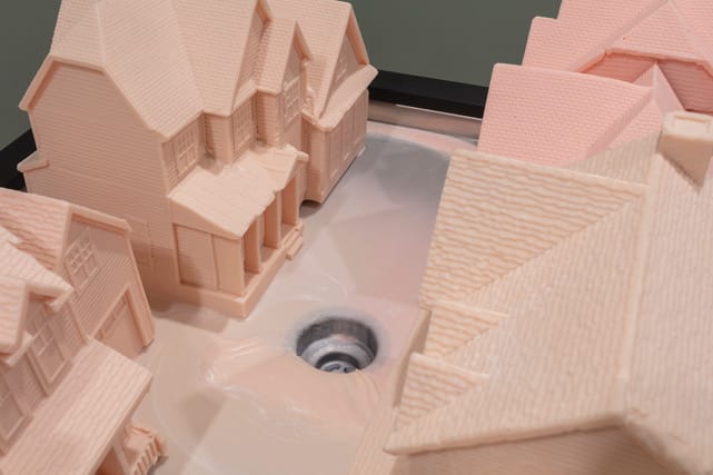 Once again, the works’ production value compensates for a conceit that is at best pedestrian and at worst pernicious. “What does the world look like,” asks the press release, “after white supremacy melts down?” The soy wax installations’ answer — vanished buildings and buckets of goop — is terrifically wrongheaded. Kline’s symbolic liquefication of white supremacy’s architecture not only imagines nothing new or positive in its place, but also portrays its dissolution as the inevitable — and purely passive — result of global warming. The point seems to be that a civilizational blank slate contains liberatory potential (the press release ends with, “Water washes everything away”), but apocalyptic climate fatalism can also limit our ability to imagine and prepare for the future by pretending, resigned, that there won’t be one. It makes one suspect that Climate Change: Part One’s middling, Hollywood-blockbuster conceit trades on this counterproductive sensationalism as a ploy for attention.