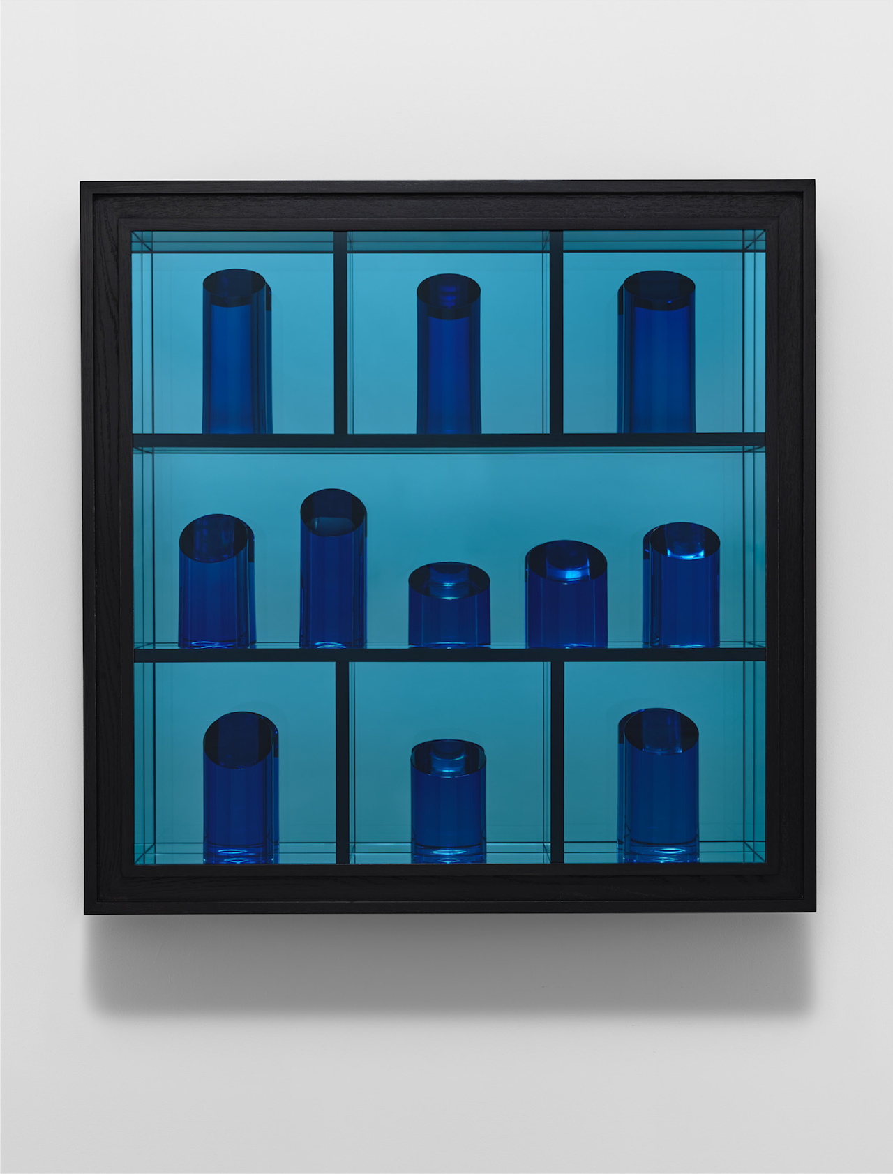 Dismissing that idea, I continued to search my mental library for an image more compatible with McElheny’s unpainterly sensibility, returning to his mesmerizing, luminescent vitrines (sometimes wall-mounted and other times freestanding), ensembles of glassware made by McElheny himself, with impressive mastery, in his small foundry on the banks of the Gowanus Canal.