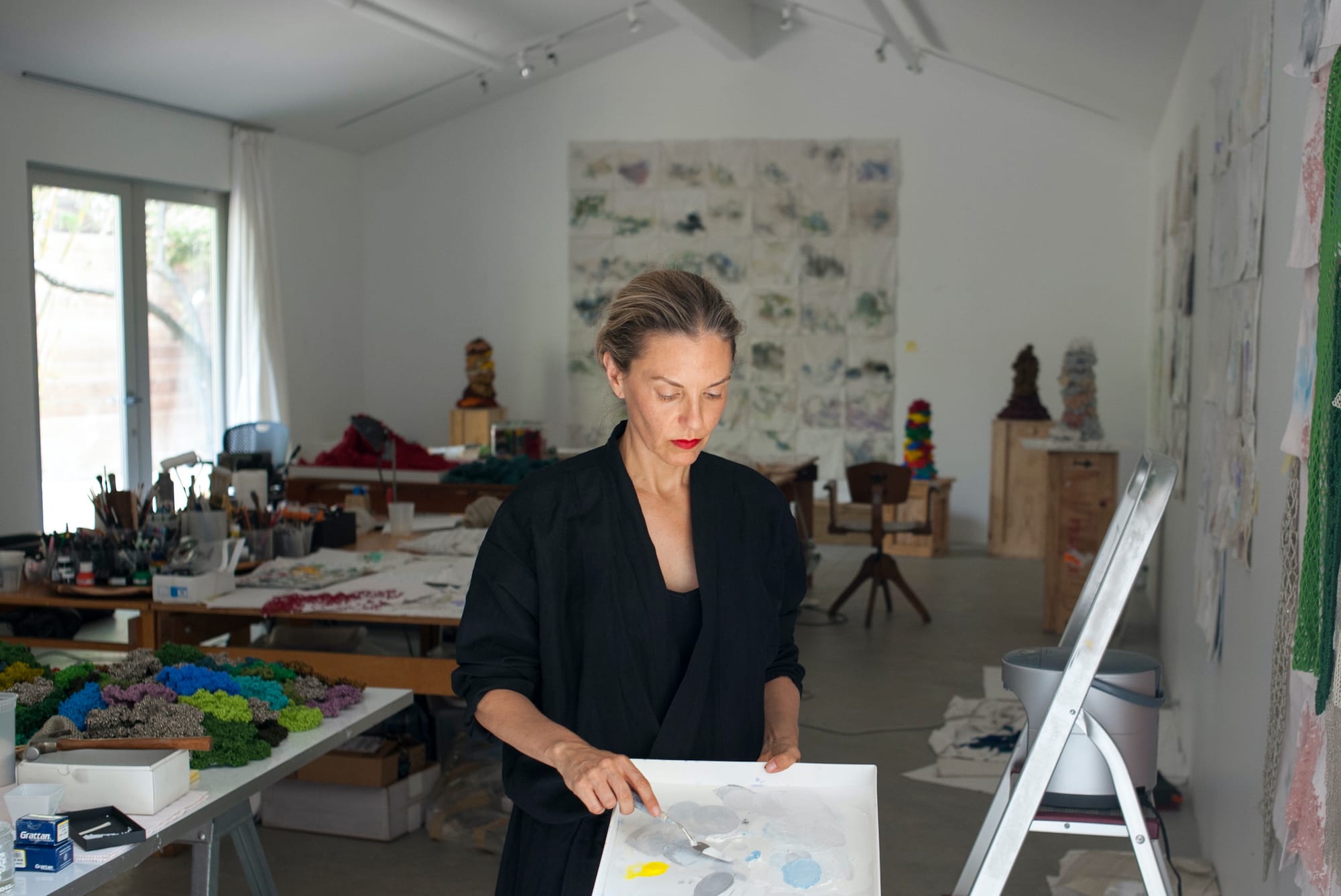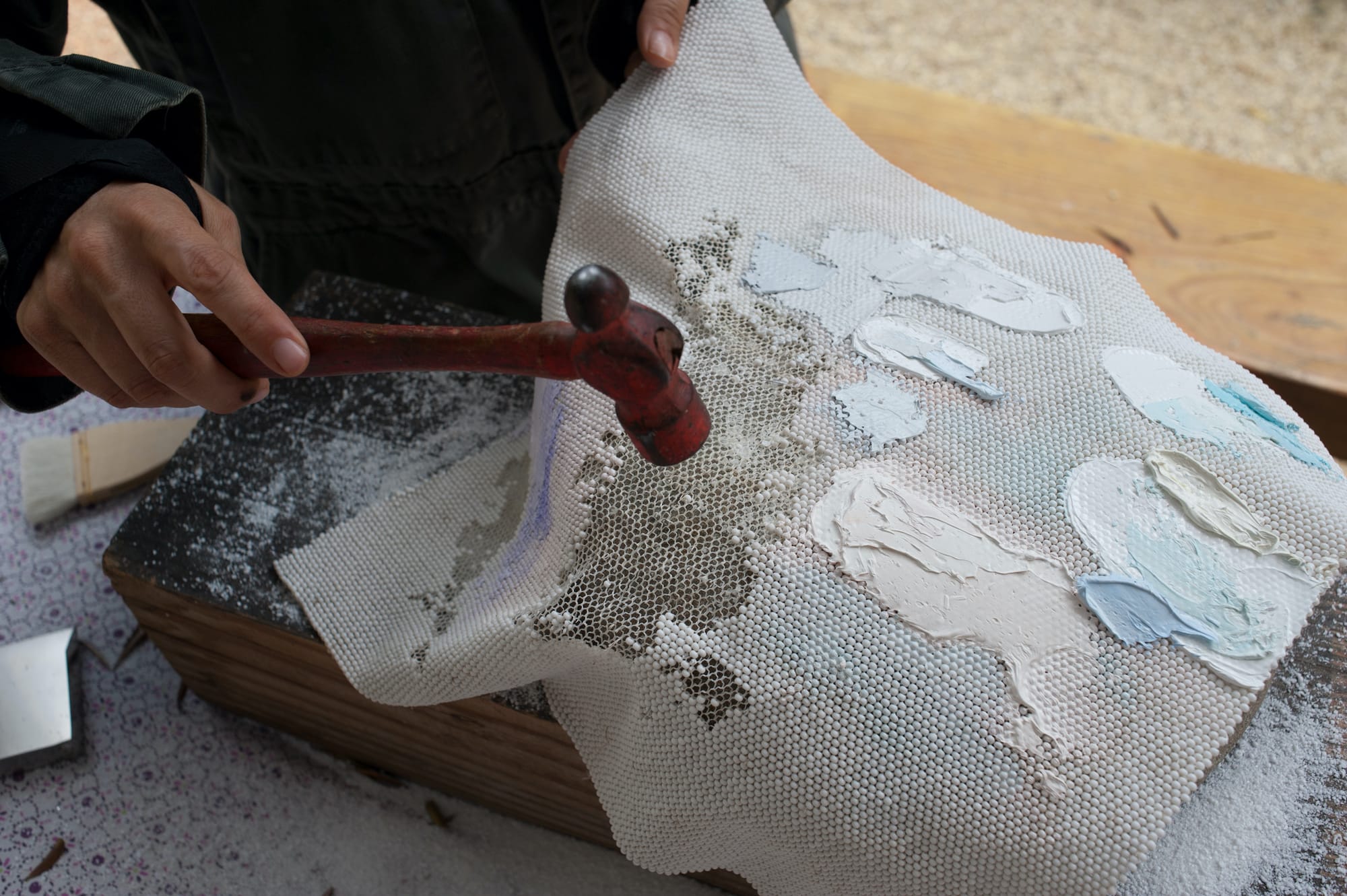 Liza Lou in her studio (photo by Mick Haggerty, courtesy the artist and Lehmann Maupin, New York, Hong Kong, Seoul, and London)